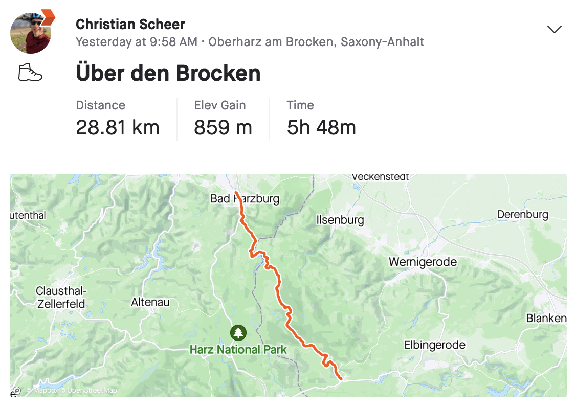 Mal schnell mit dem Zug von Dresden nach Bad Harzburg, dort Lena getroffen, eine Nacht im Airbnb geschlafen. Samstag früh dann mit dem Bus und Taxi nach Elend (ja, das Dorf heißt tatsächlich so) und über den Brocken zurück nach Bad Harzbug. Eine Wunderschöne Wanderung. Der Harz ist toll, die Wanderung über den Teufelsstieg angenehm anspruchsvoll.