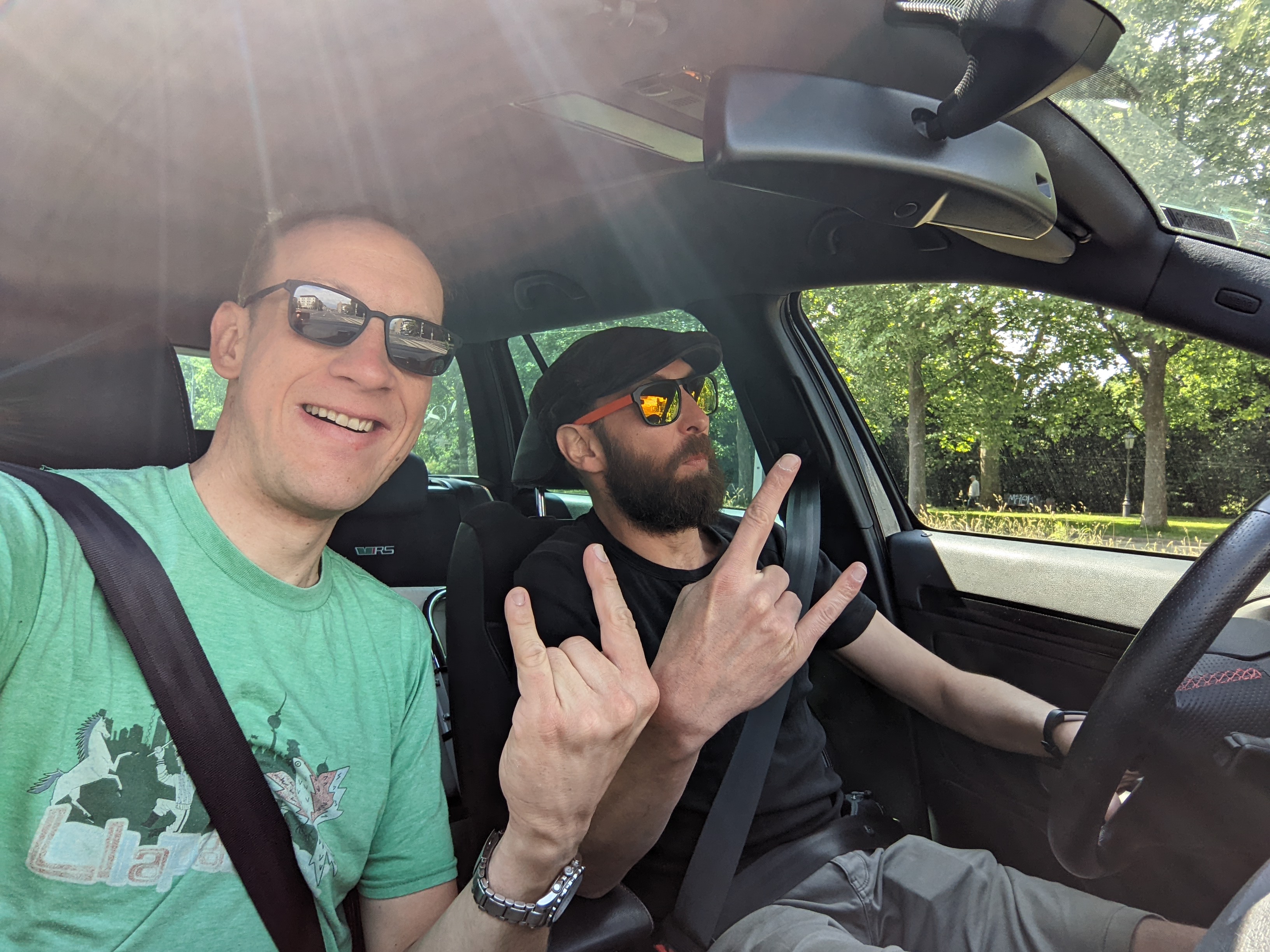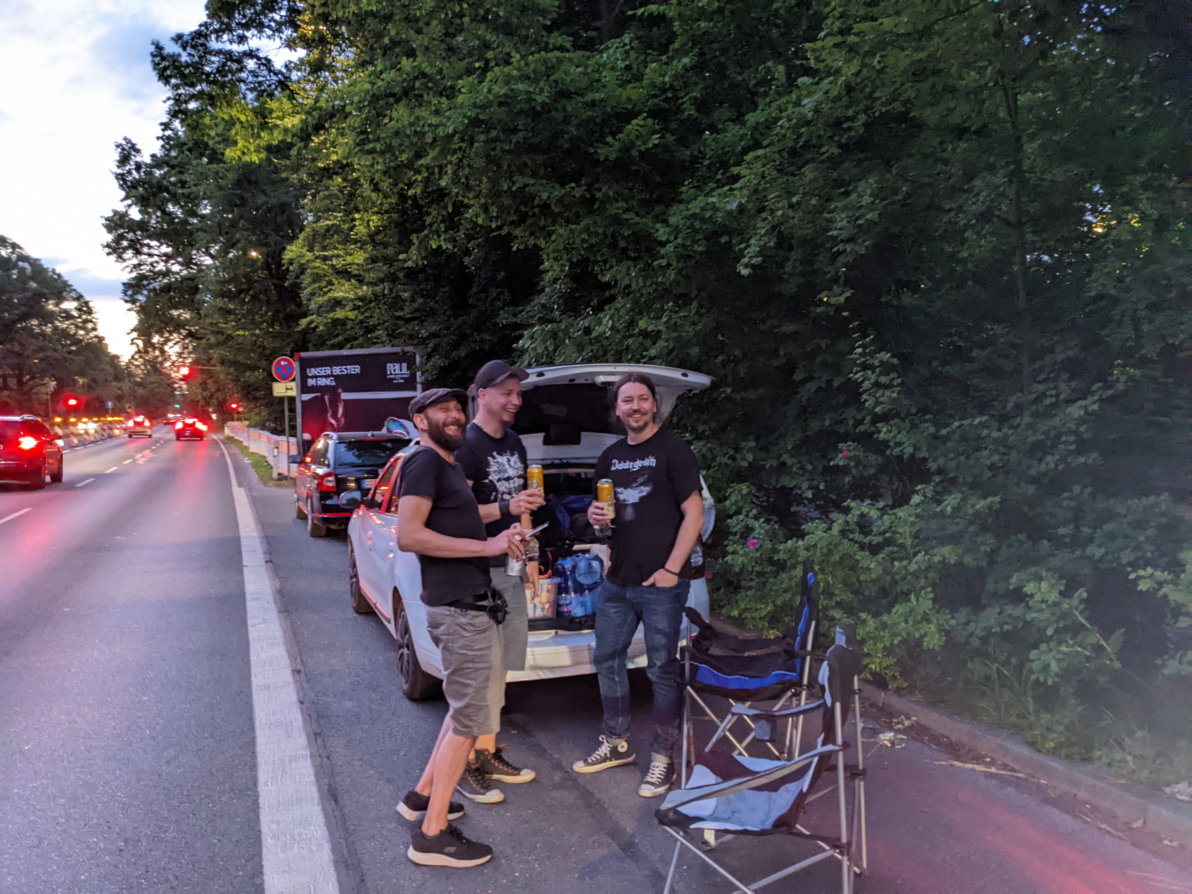 Das eigentliche Ziel des Abends war aber, die Autos in Pole-Position, wenige 100 Meter vorm Einlass abzustellen. Sascha und Fabi waren schon dort, das erste Dosenbier schmeckte.