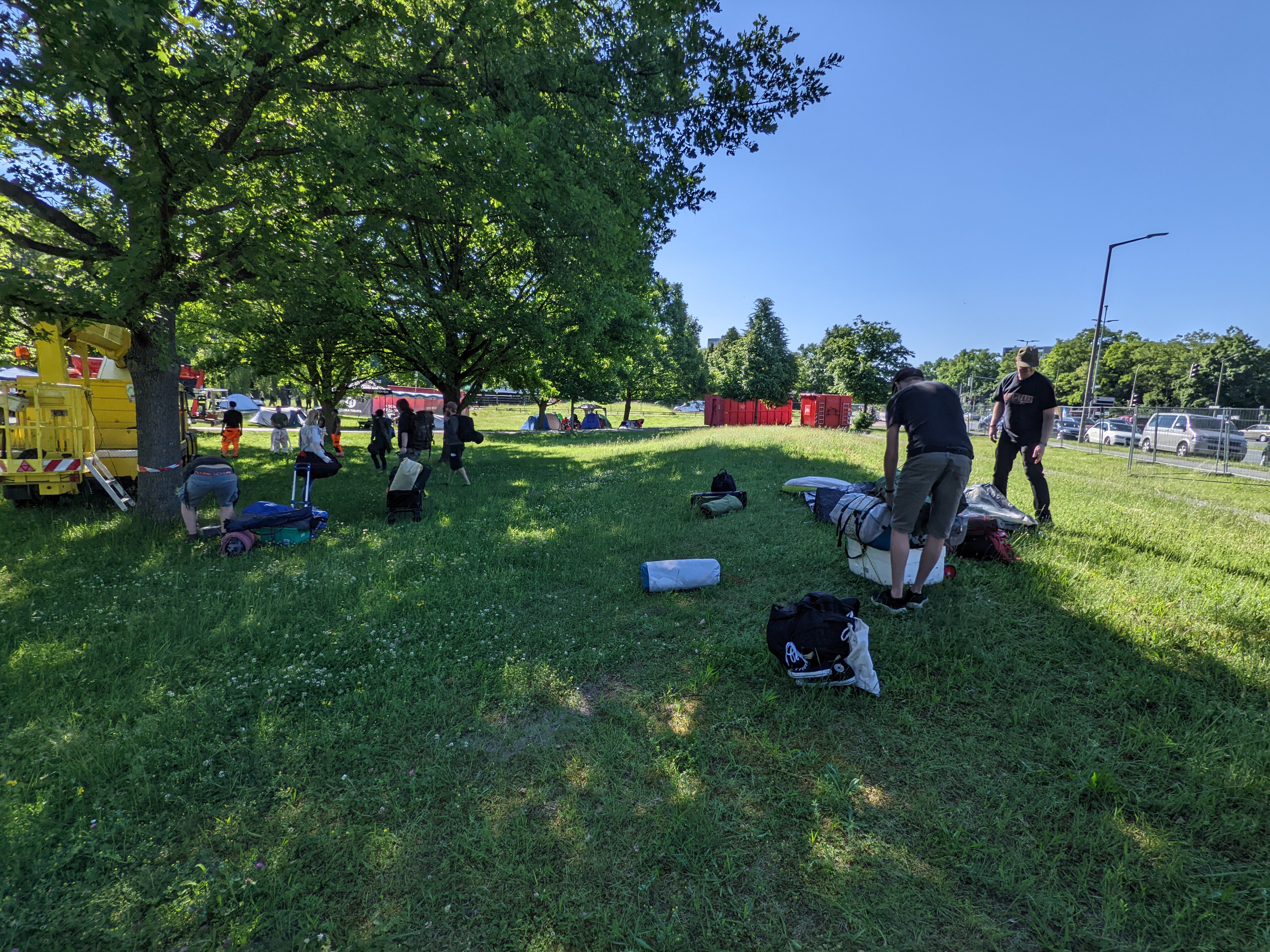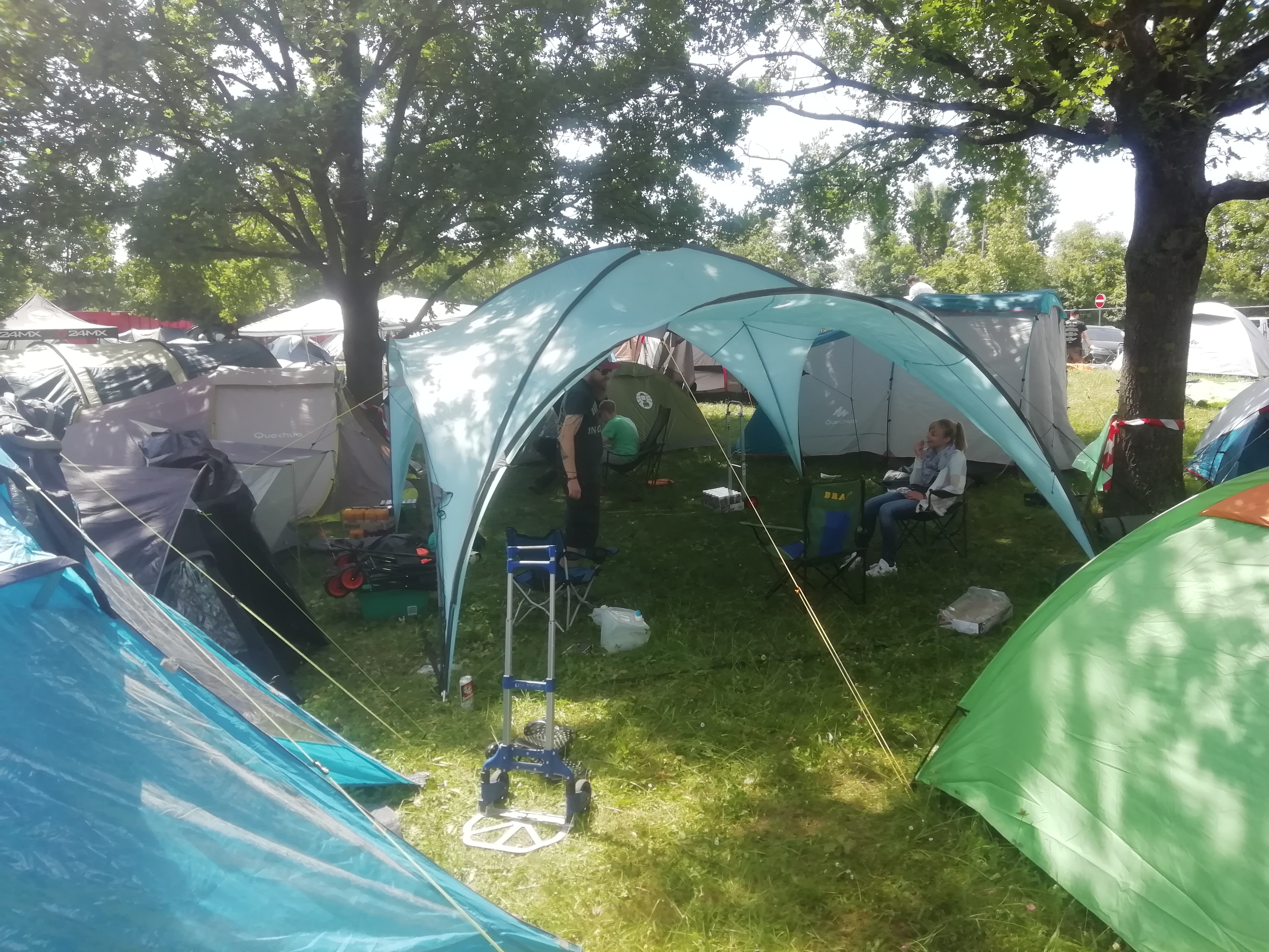 Wir konnten durch etwas Glück einen Zeltplatz für acht Zelte und das große Pavillon ergattern. Dadurch, dass wir relativ viele Leute zum Aufbau waren, ging das alles recht fix. Irgendwann trudelten Pale und Lars als zweites Auto aus Dresden dazu ein.