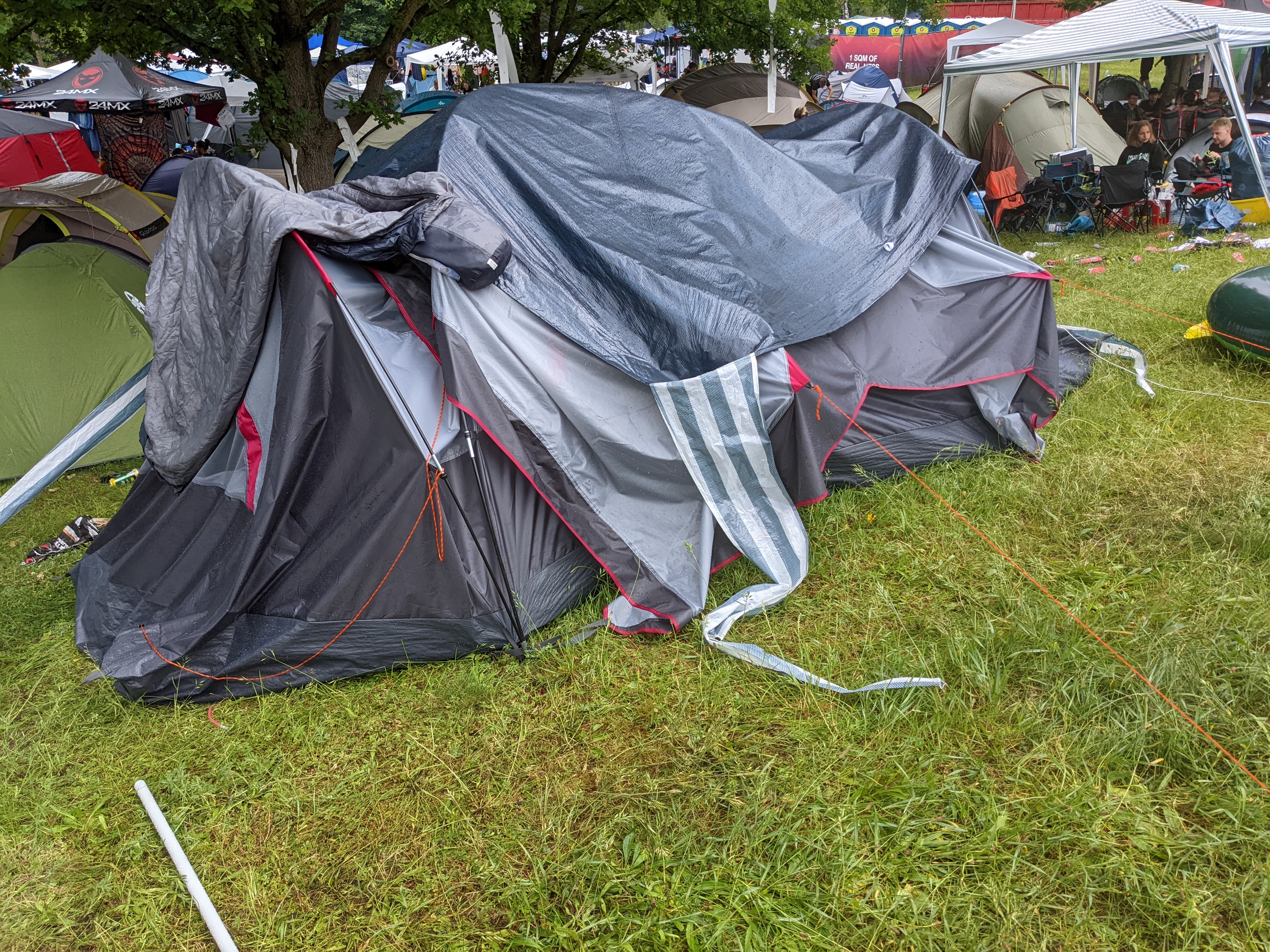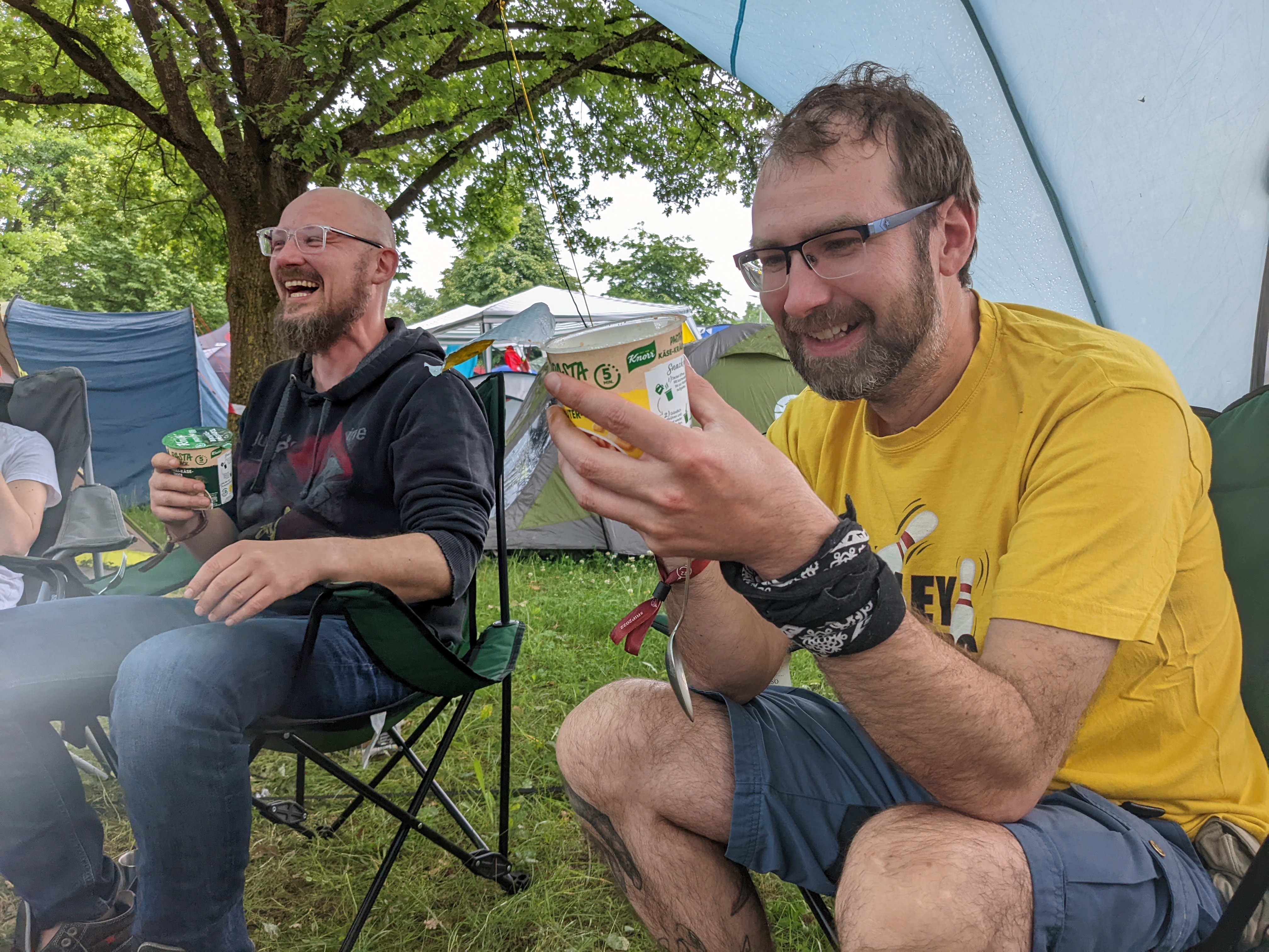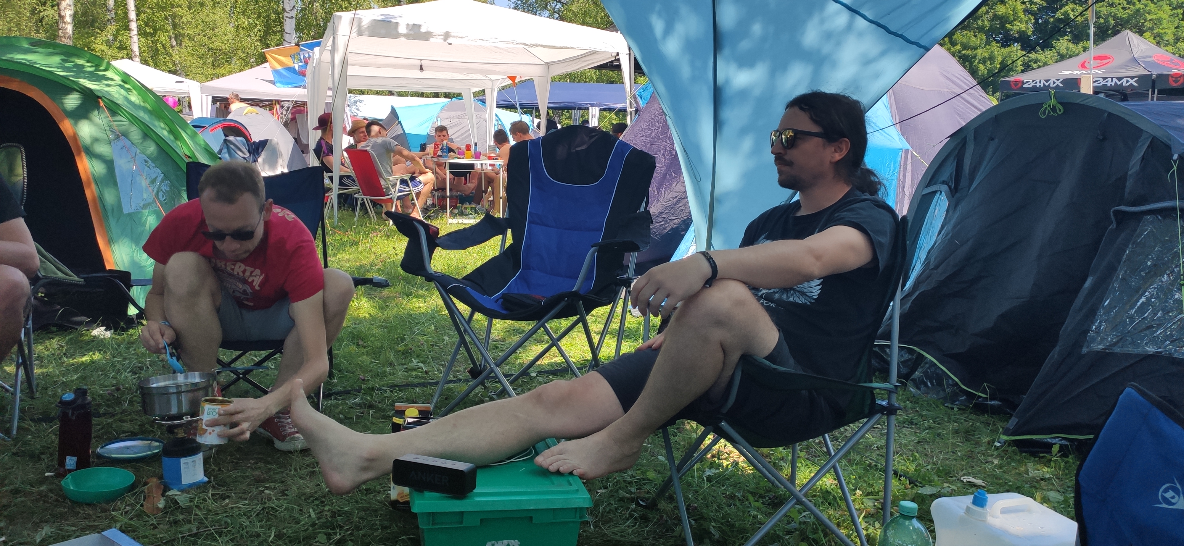 Während nach Warten, Tragen und Aufbauen der gemütliche Teil begann, beschloss mein Magen eine Revolution anzuzetteln. Die war leider temporär erfolgreich, für mich war der Donnerstag ab Mittags vorbei. Selbst Wasser zu trinken, war keine Option mehr. Ich habe dann bis Freitagmorgen um sechs geschlafen, während der Rest der Truppe ein paar wenige Biere trank und gegen Abend schon mal das Gelände erkundete.
