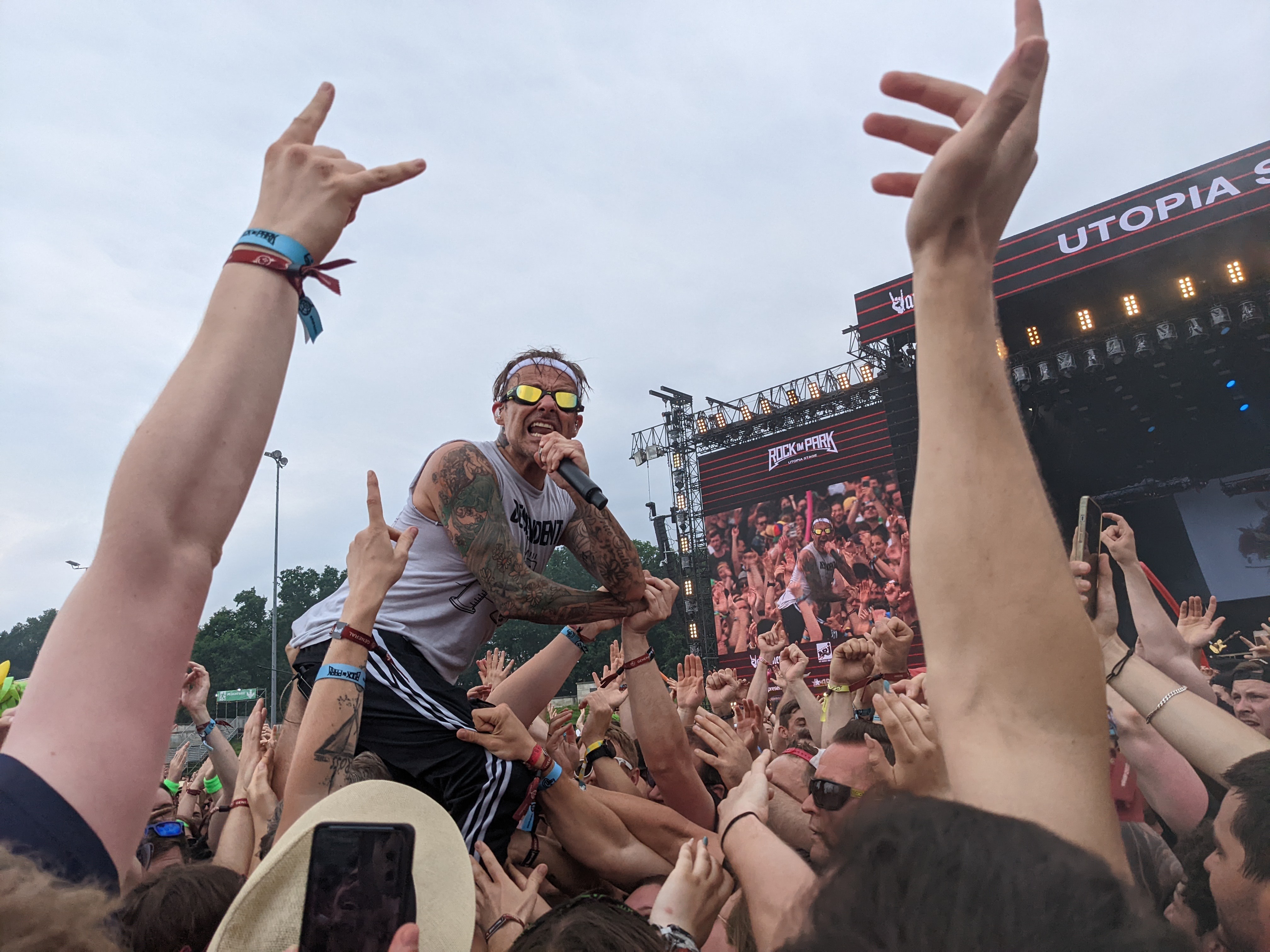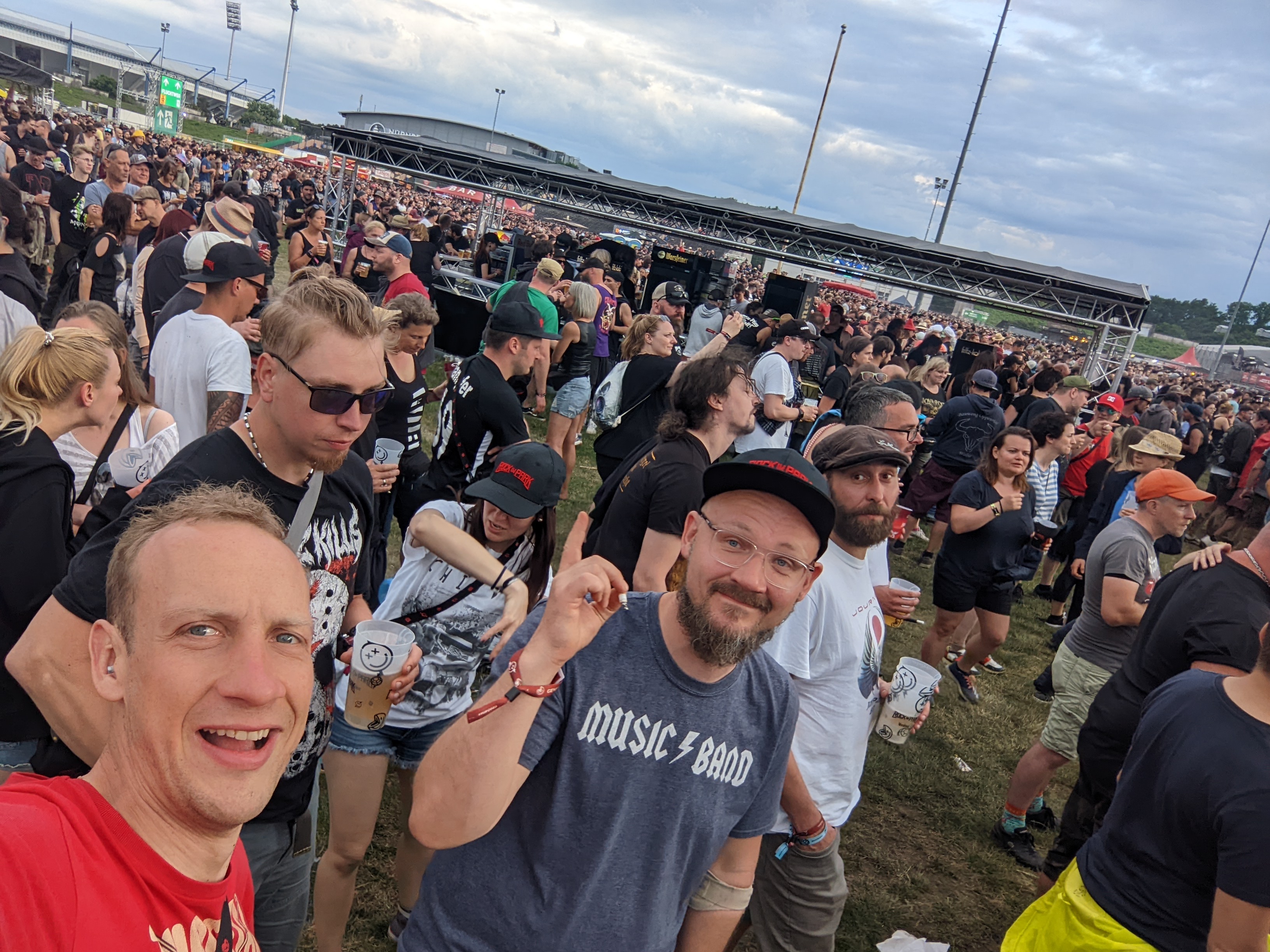 Eine Anekdote am Rande: Es war sehr witzig, zu Beginn des Konzerts in die verstörten Gesichter der 20-Jährigen zu schauen. Vermutlich waren diese Corona-bedingt das erste Mal auf einem Konzert dieser Größenordnung. Man sah einfach, wie perplex sie waren, als direkt neben ihnen im ersten Song eine Circle Pit startete. Komplette Verwirrung, was sie tun sollen. War halt kein Sitzpatz-Konzert.