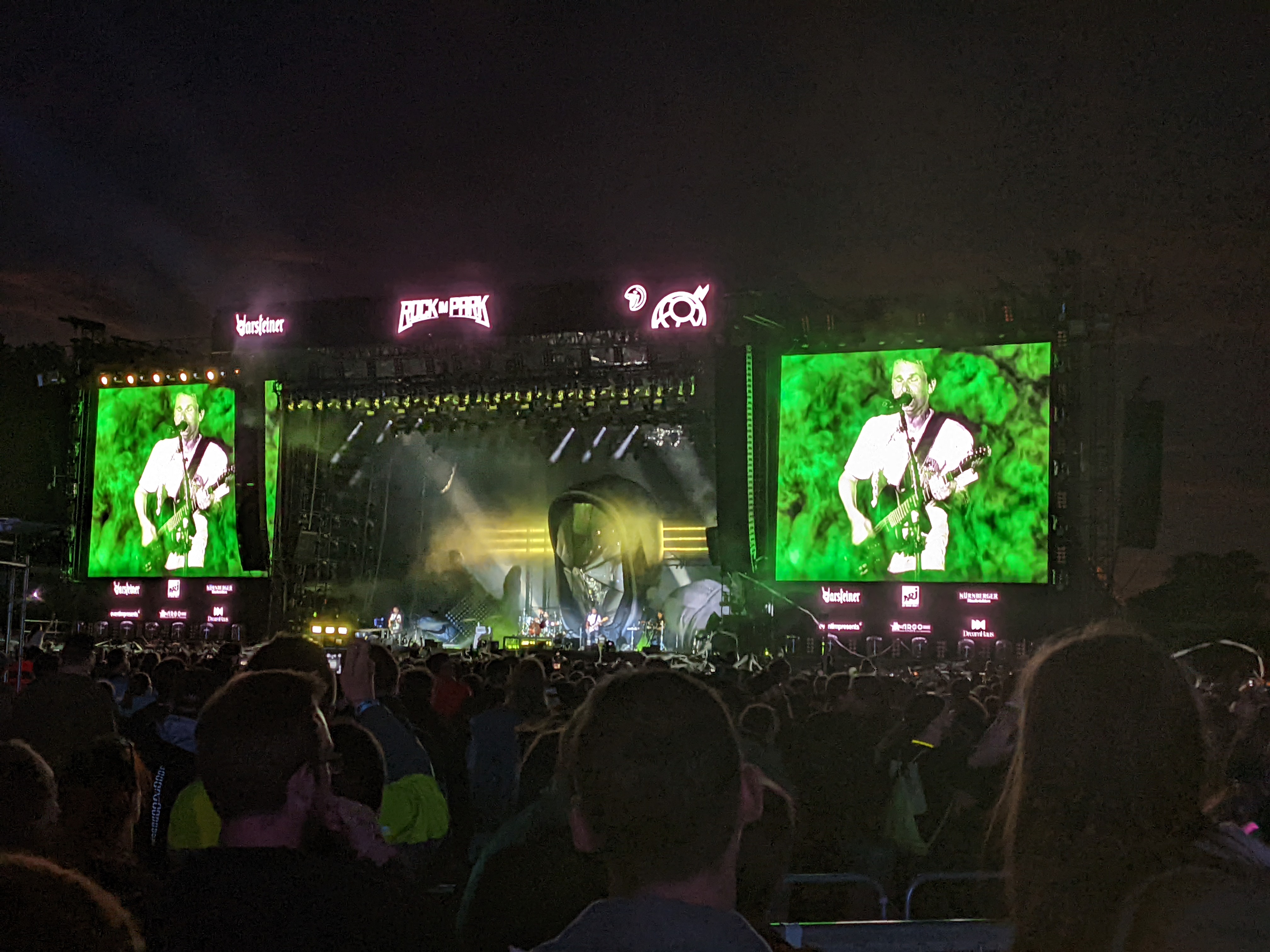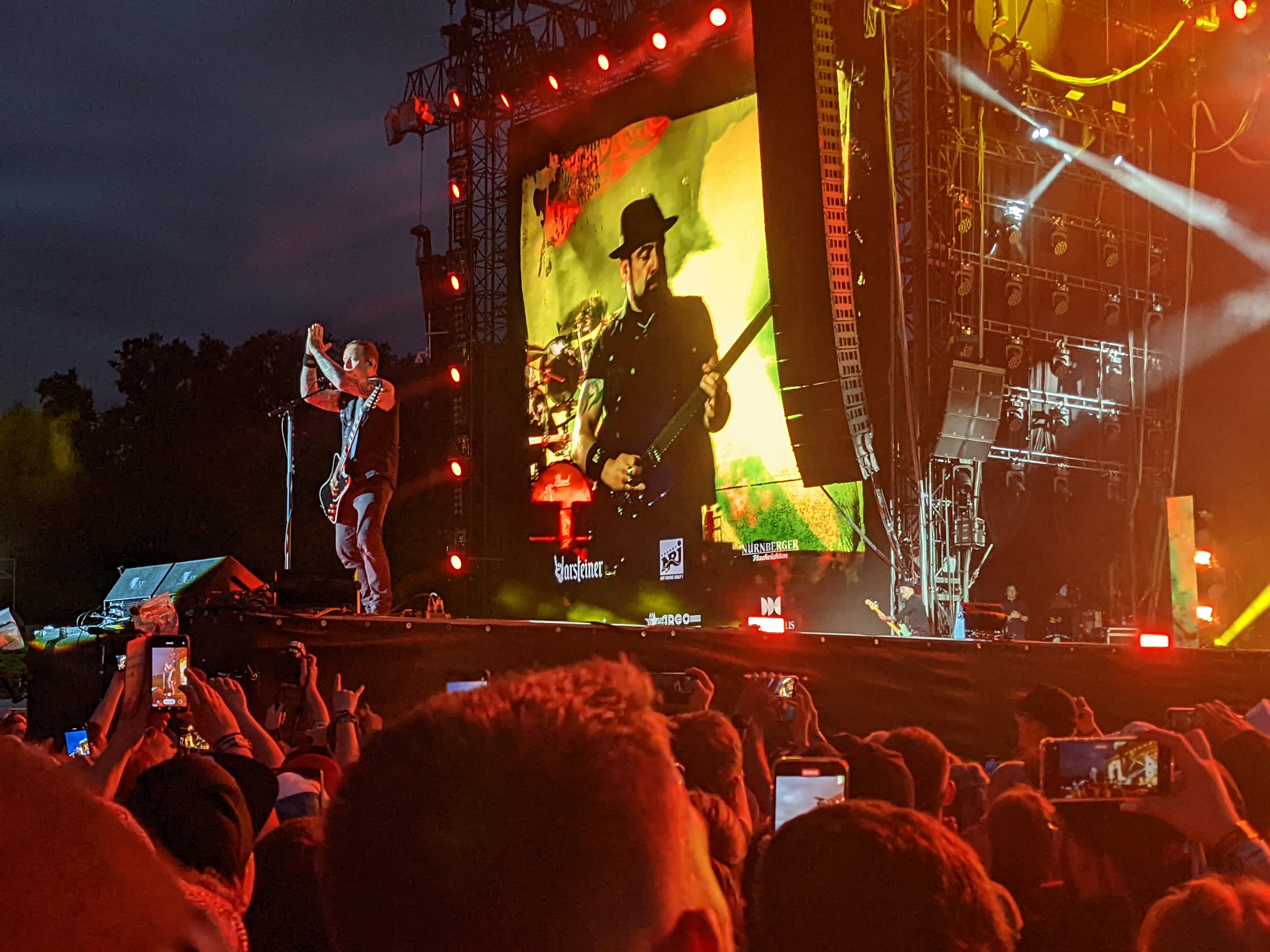 Etwas schade, denn aus den Backfield hat Green Day nur halb so viel Spaß gemacht. Es klang alles wie die bekannten (und auch sehr guten Live Alben). Also wirklich alles. Sound, Setlist, Witze, Aktionen wie der Fan, der einen Song auf der Gitarre mitspielen und sie dann behalten darf. Einerseits gilt mein Respekt erneut den Musikern und Sound-Technikern für diese Qualität, aber andererseits war es leider langweilig. Ich hab mich gefühlt, wie eine Konzertaufnahme im Stehen zu sehen.