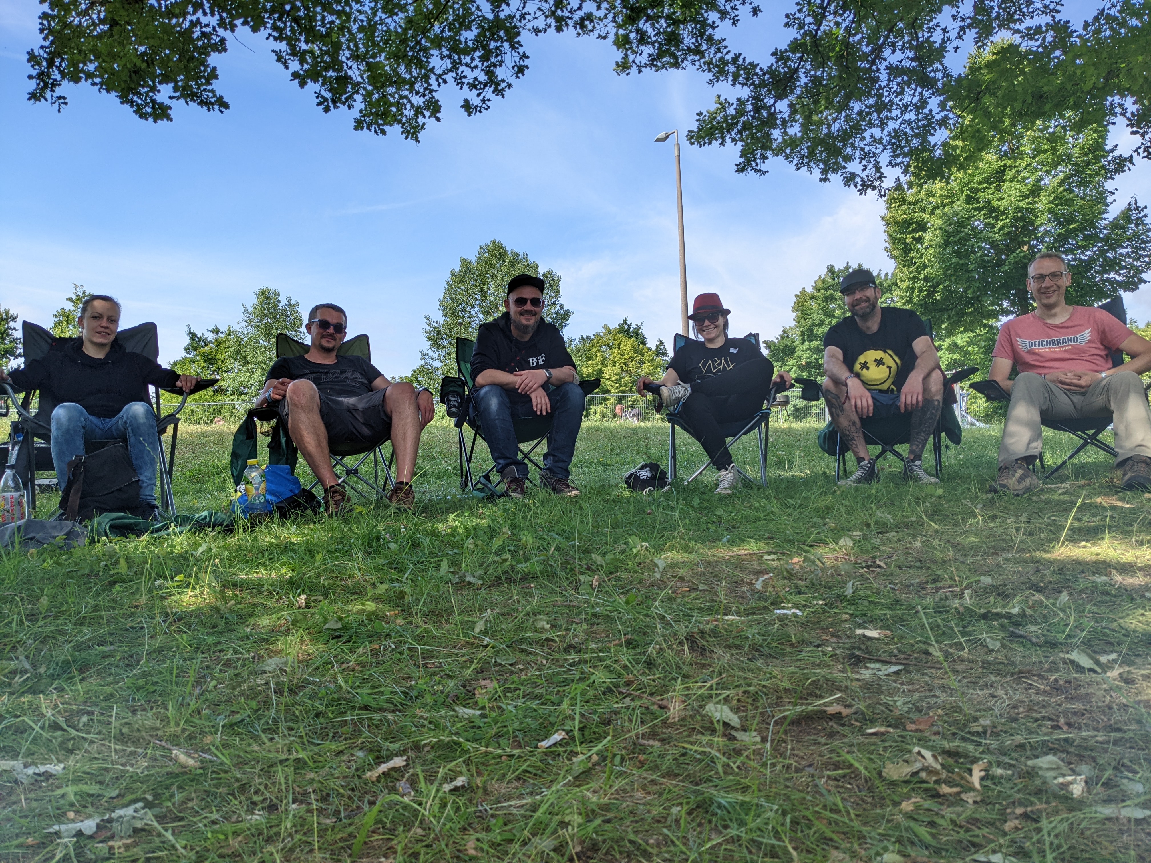 Zu Montag gibt es nicht mehr viel zu sagen. Abbau, Gruppenbild (leider ohne Jessi), herzliche Verabschiedungen und der erwartbare Beschluss, dass Ganze wieder zu machen. Für mich war es sehr cool, sich einer eingespielten RIP-Truppe mit teilweise 20 Jahren Erfahrung dort anschließen zu dürfen. Das mein Magen gestreikt hat, hat mich Donnerstag ganz schön mitgenommen. Und ich bin heilfroh, dass ich doch noch so viel Festival genießen konnte. Das hätte viel schlimmer kommen können. Zwischendurch war ich kurz davor, abzureisen.