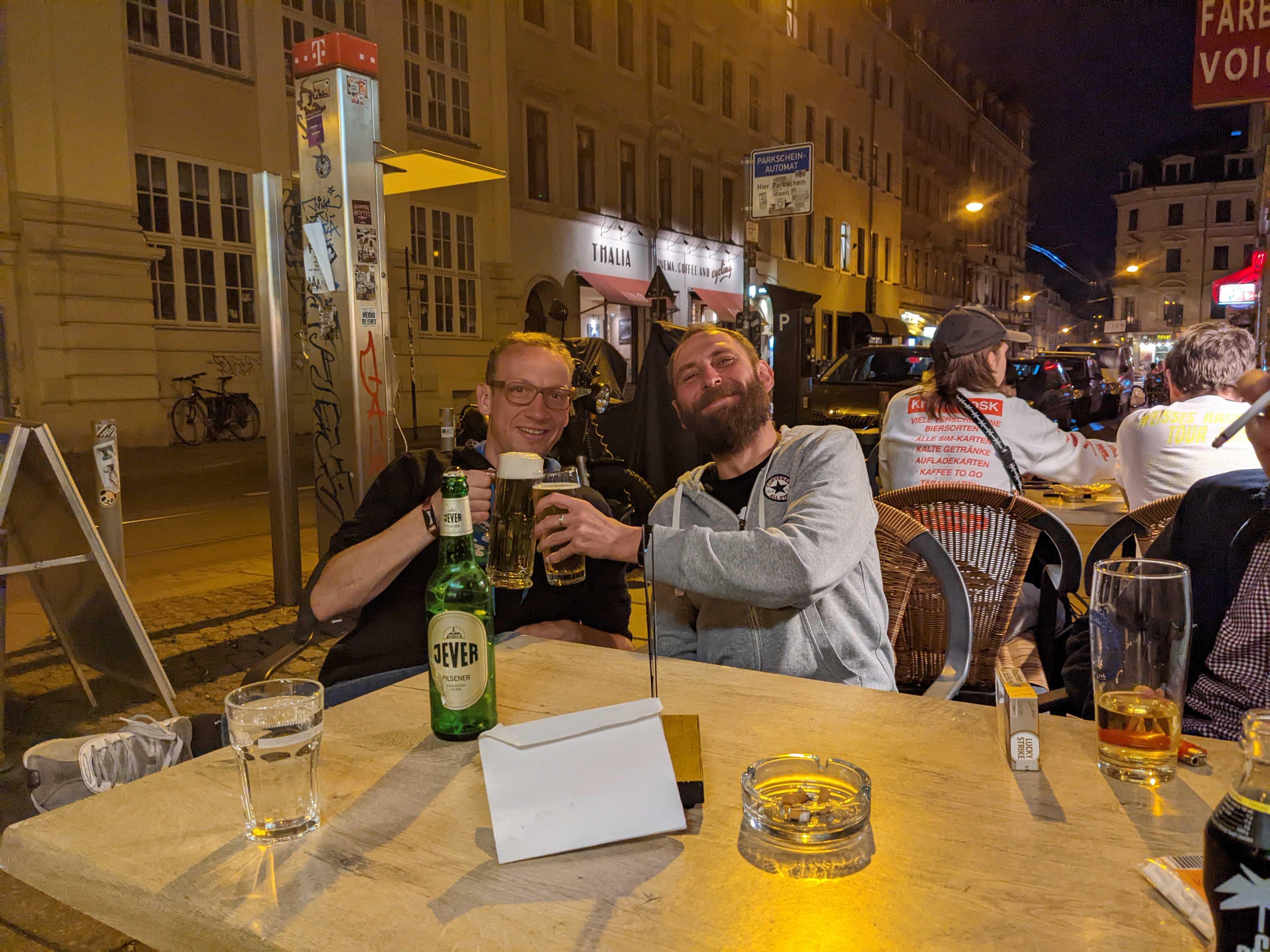 Aus Dresden machte sich Auto 3 mit Andrea, Björn und Jule auf den Weg. Ich prüfte derweil den Zustand meines Magens. Nach leichter Skepsis ging feste Nahrung und dann auch irgendwann wieder Bier.