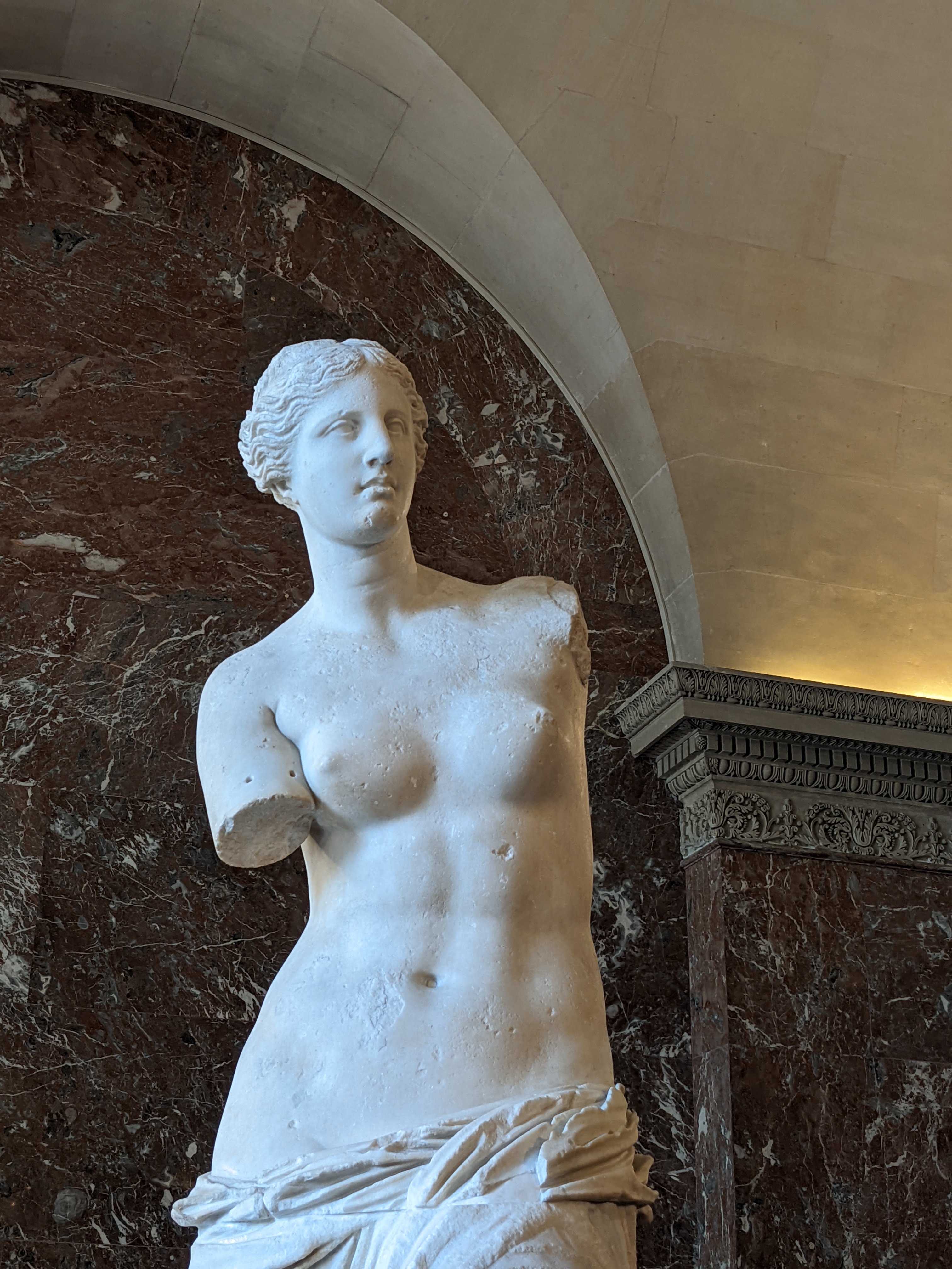 Wirklich spannend waren die Ägyptischen Ausstellungen. Und auch die Bildhauer aus Frankreich und Italien wussten zu Ihrer Zeit, was sie taten. Die Venus von Milo kann man sich schon mal in Ruhe anschauen - was auch schon nicht ganz so einfach war. Die breite Masse an Menschen ist leider mehr an dem Selfie mit dem Kunstwerk als an dem Kunstwerk selbst interessiert. Können sie ja alle machen. Aber wenn ich dann ganz vorne “dran bin”, einfach mal zwei Minuten schaue, ohne ein Selfie zu machen und dann darauf angesprochen werde, ist das schon seltsam.