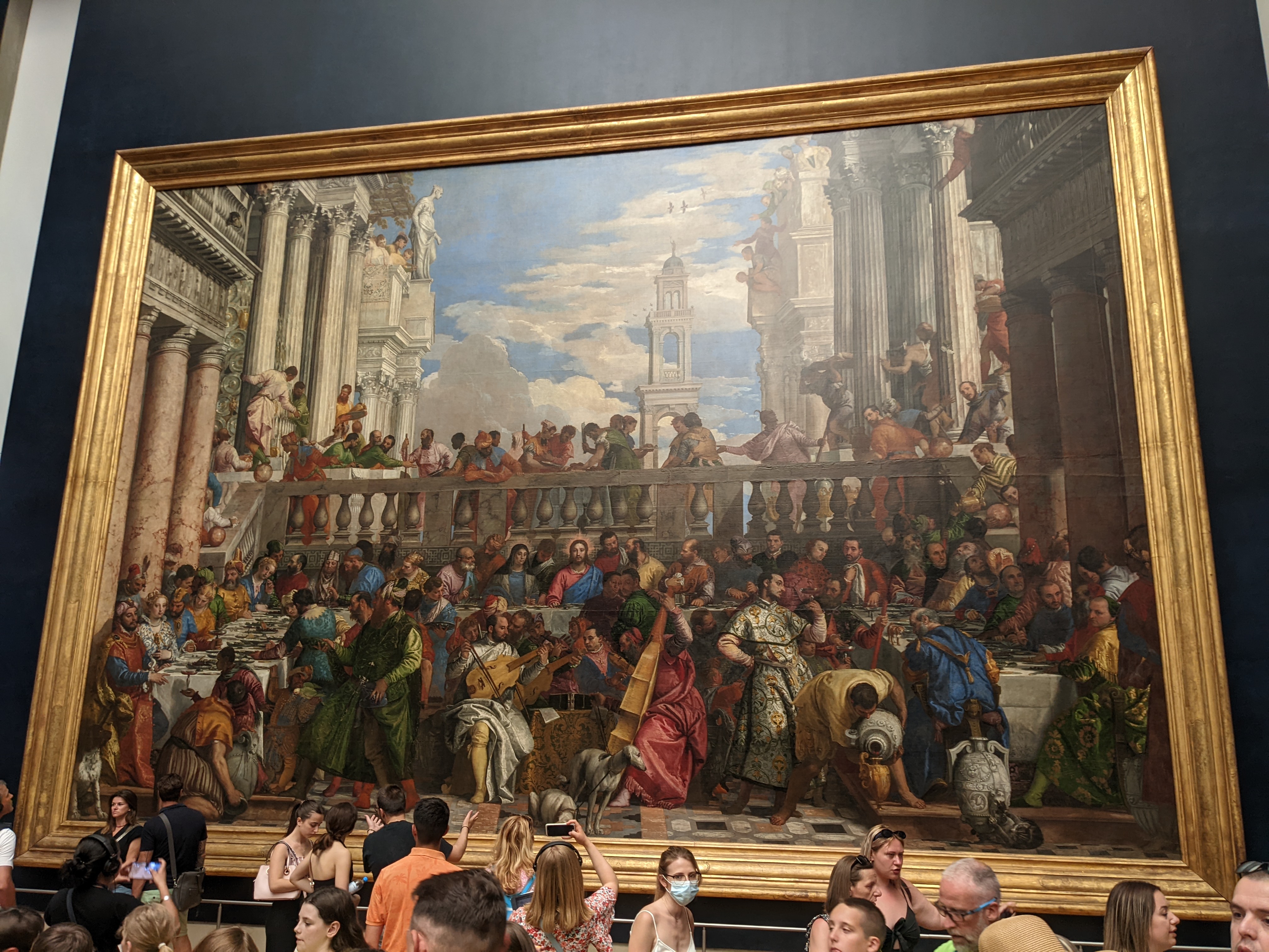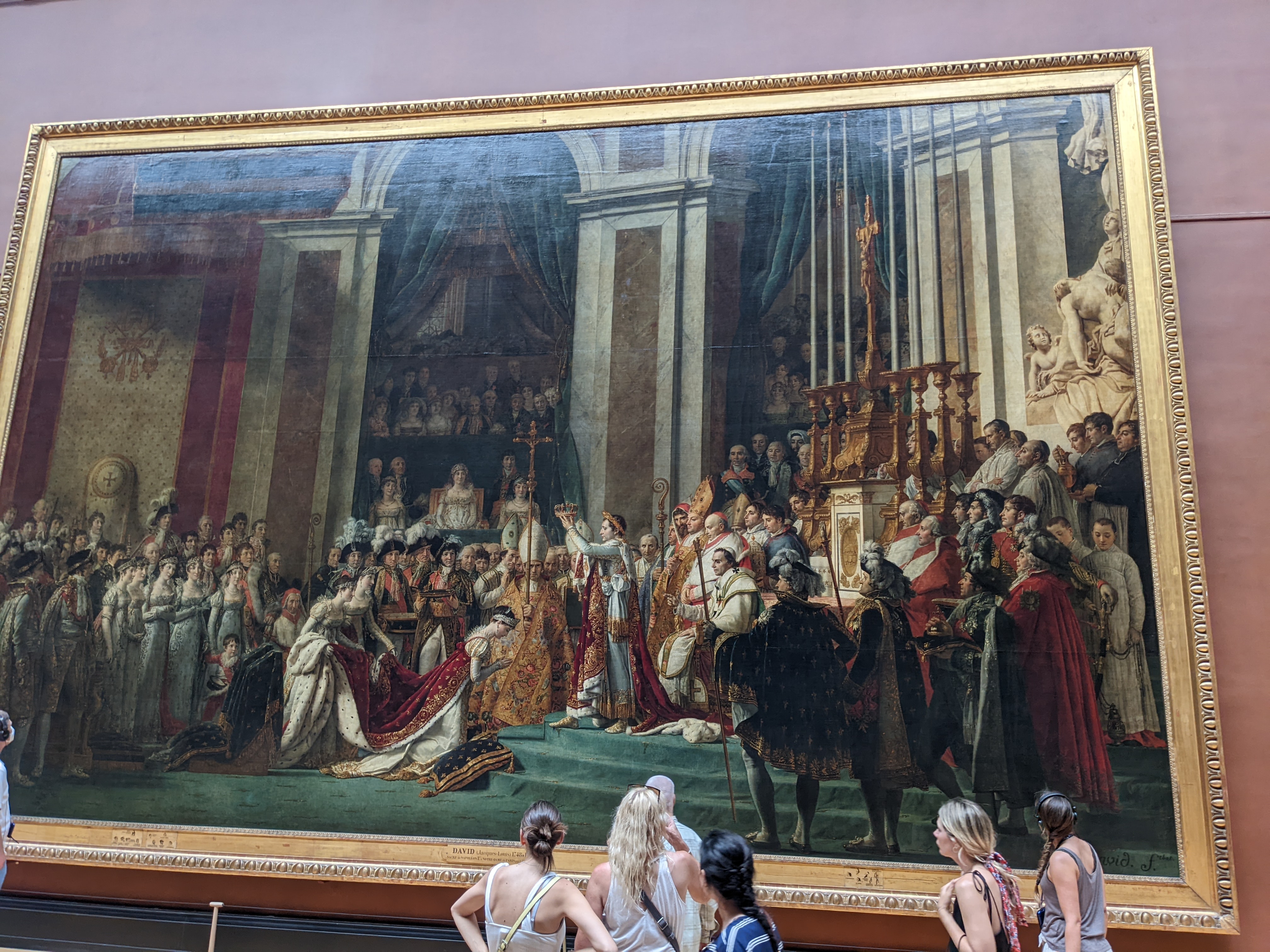 Naja, nachdem ich die Mona Lisa nicht aus der Nähe gesehen hatte, ging es noch zu dem gigantisch großen Bild von Napoleons Krönung. Ich habe ein Detail- und ein Gesamtfoto gemacht. Das Bild ist einfach unglaublich groß und beeindruckend.