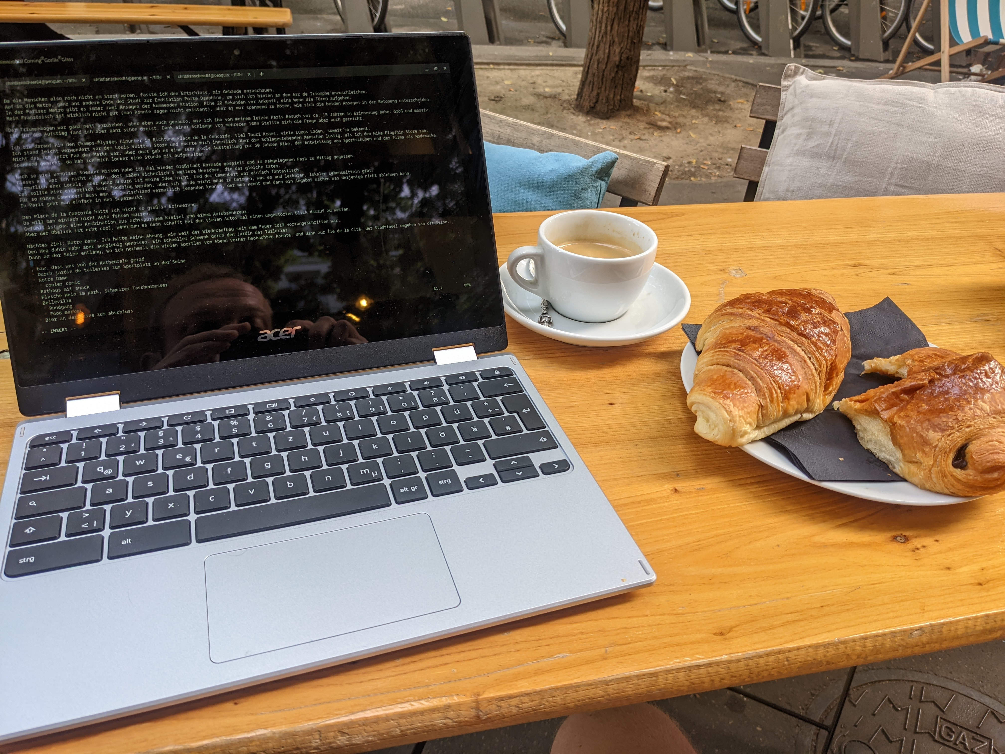 Zum Frühstück ging es dieses mal ins Café Casiopée. Ganz kleiner Laden - der Inhaber macht den Kaffee dort noch selbst. Also hab ich in bester Hipster-Manier den Laptop rausgeholt und bei Blätterteig-Gebäck ein bisschen am Blog getippt.