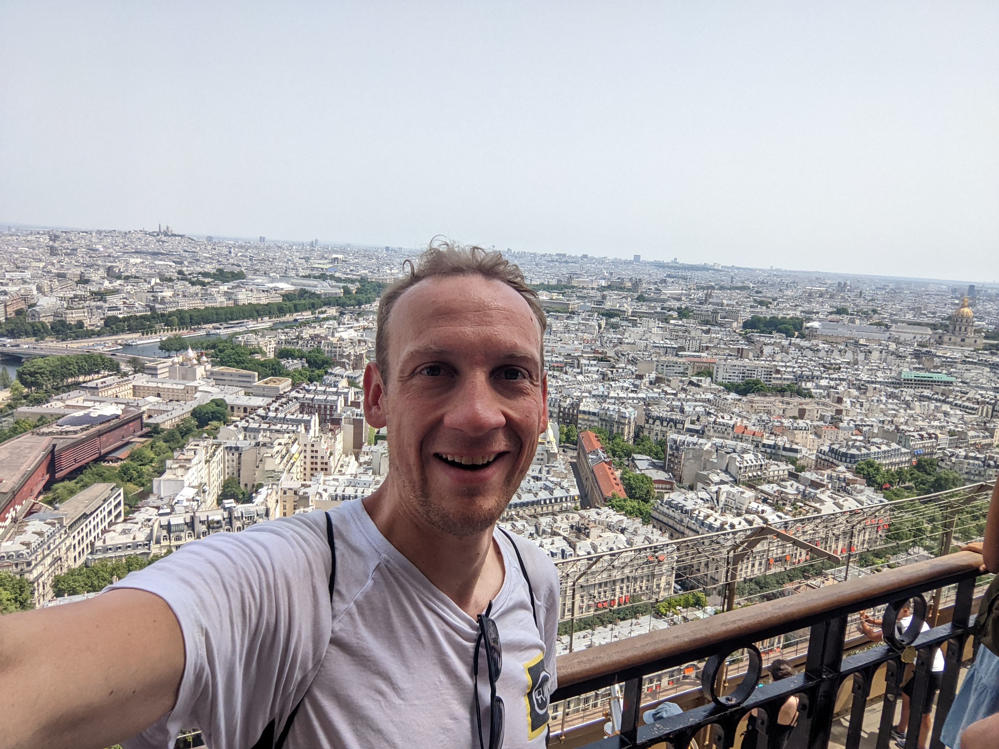 Wie auch immer. Ich hab mich ca. zwei Stunden auf dem Turm aufgehalten und sowohl den Ausblick genossen als auch die Konstruktion begutachtet. Auch von 120 Metern Höhe kann man schon recht weit gucken. Sogar Sacré-Cœur in Montmartre konnte man erkennen. Ich musste mich nur tatsächlich ein bisschen an die Höhe in Kombination mit dem recht starken Wind gewöhnen. Möglicherweise hab ich ein bisschen Höhenangst? Wenn ich mich an mein letzes Mal auf dem Eiffelturm erinnere, war mir dort sogar noch ein ganzes Stück unwohler. Dieses Mal war nach ein paar Minuten aber alles ok.