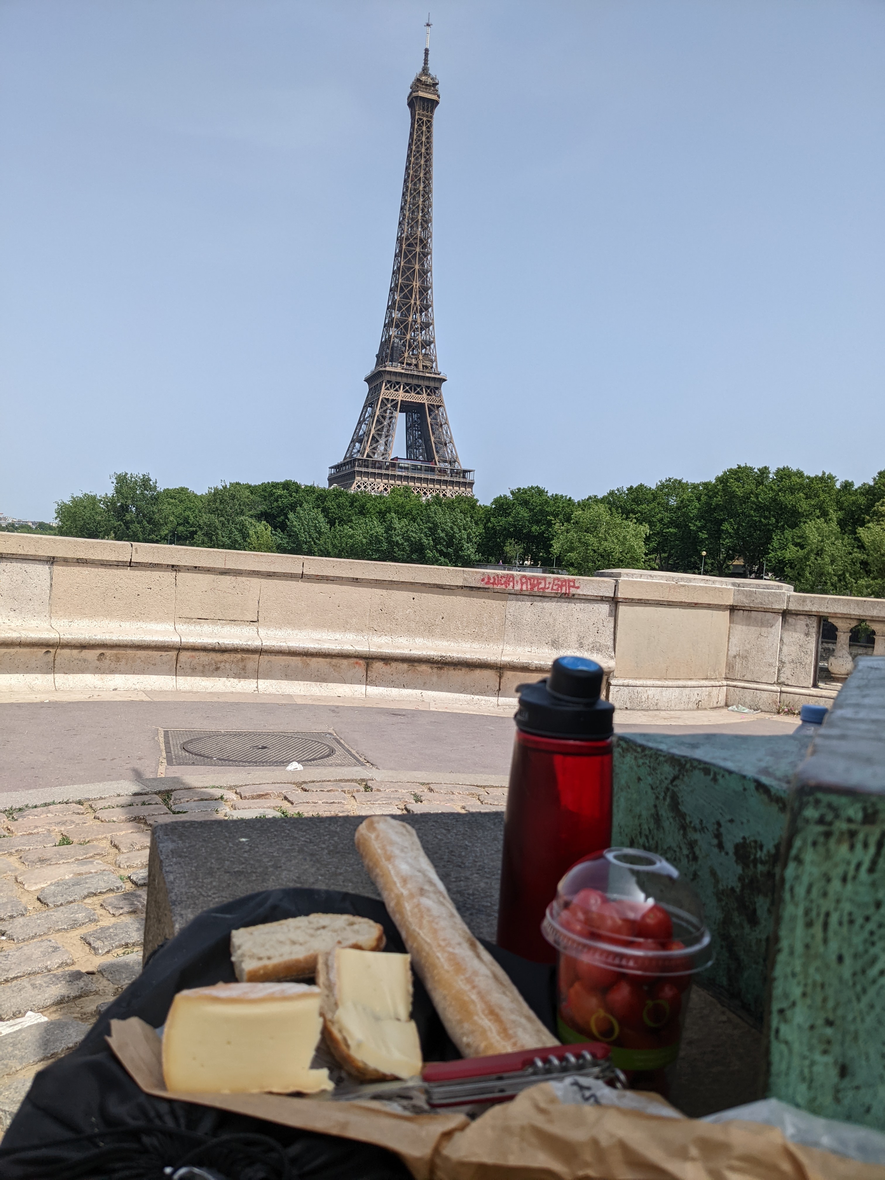 Zum späten Mittagessen ging es dann auf die Pont de Bir-Hakeim. Die Brücke ist bekannt aus Inception und einigen weiteren Filmen und man hat einfach einen mega Ausblick auf den Eiffelturm. Ziemlich cooler Spot für eine Pause. Außerdem ist die Brücke der Anfang der Insel der Schwäne, auf der am anderen Ende die größte der Pariser Freiheitsstatuen steht. Immerhin ein Viertel der Größe zum New Yorker Vorbild.