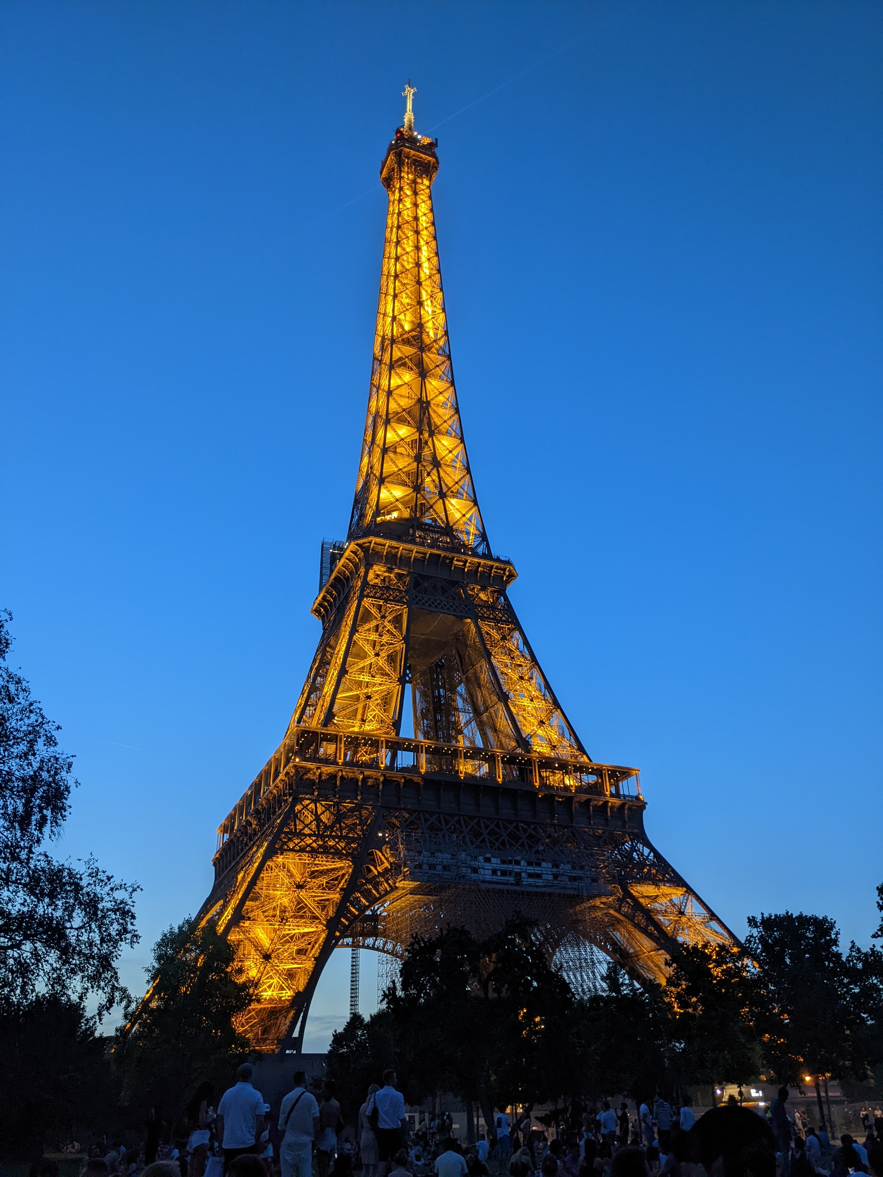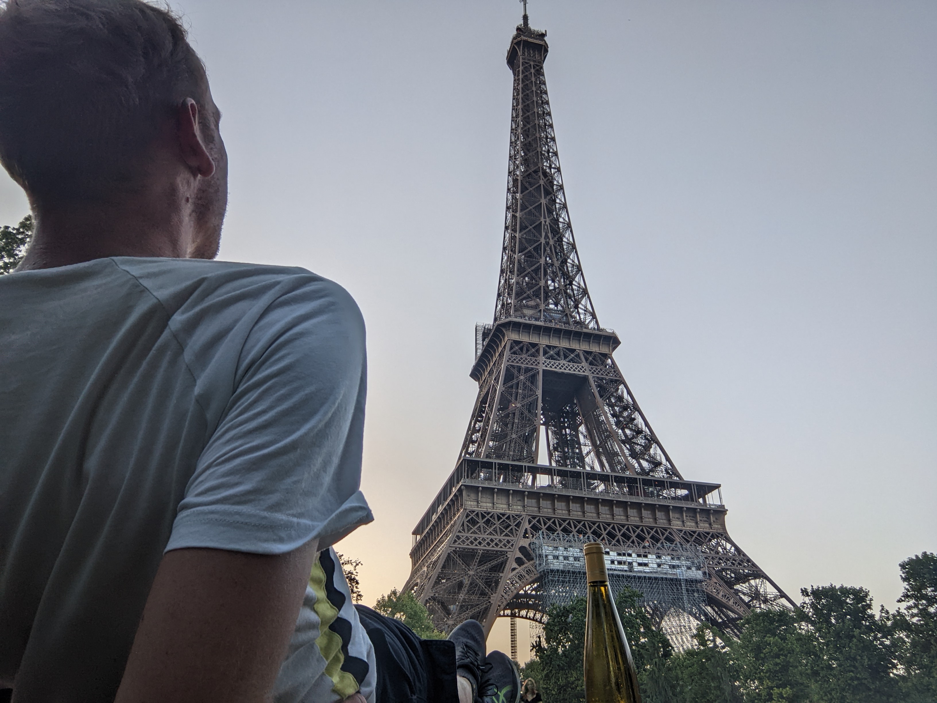 Irgendwann beginnt der Eiffelturm, zu glimmen, und ab dann zu jeder vollen Stunde mit allem, was er hat, zu funkeln. Sehr cool anzusehen, aber inbesondere die Stimmung dort im Park ist einfach nett. Zumindest, wenn man das Glück von netten Picknick-Nachbarn hat. Zwischen zwei Eintracht-Frankfurt-Ultras und einem kreischenden Jungesellinen-Abschied musste ich dann irgendwann mal fliehen und mir einen anderen Platz suchen. :)