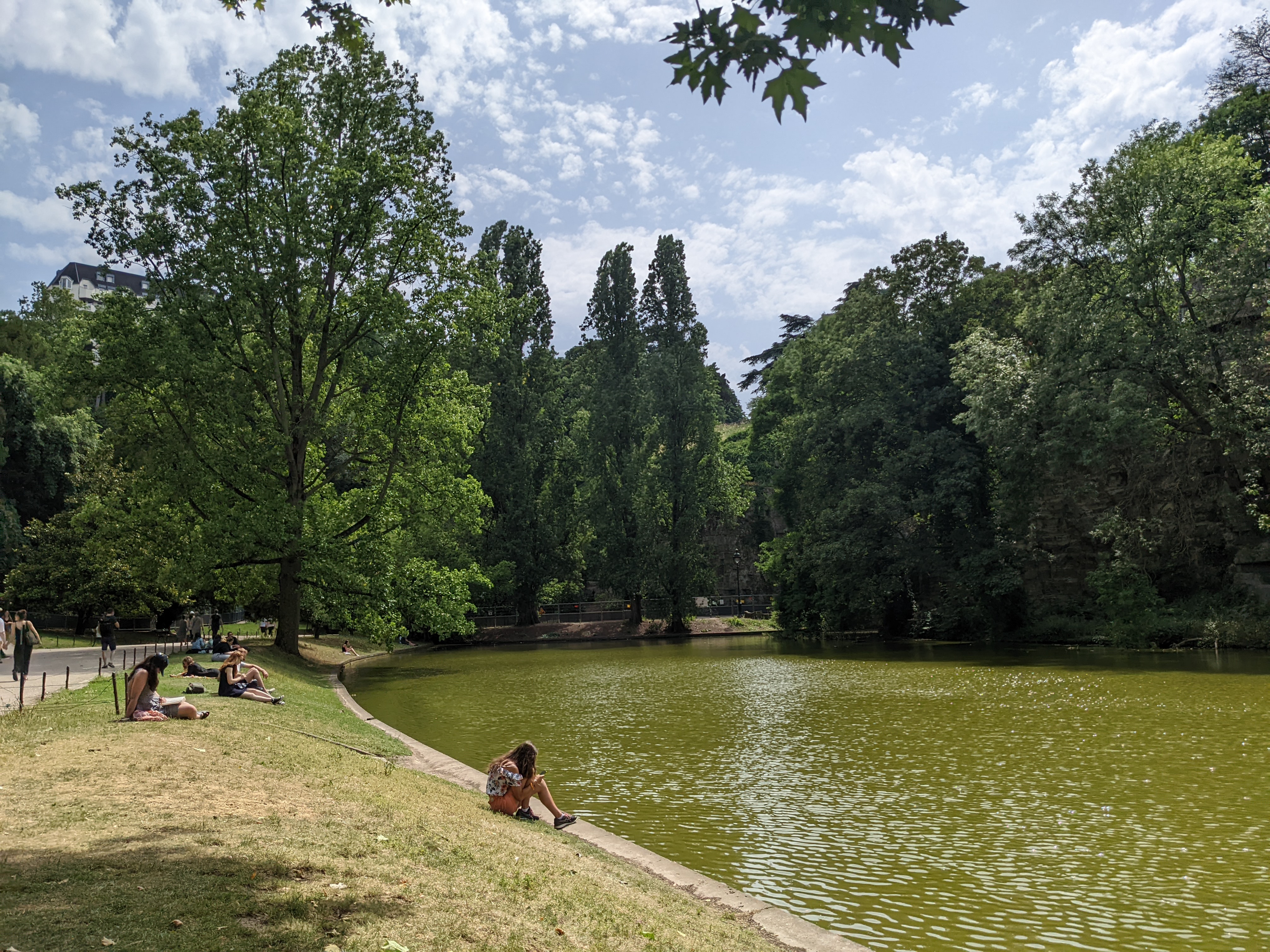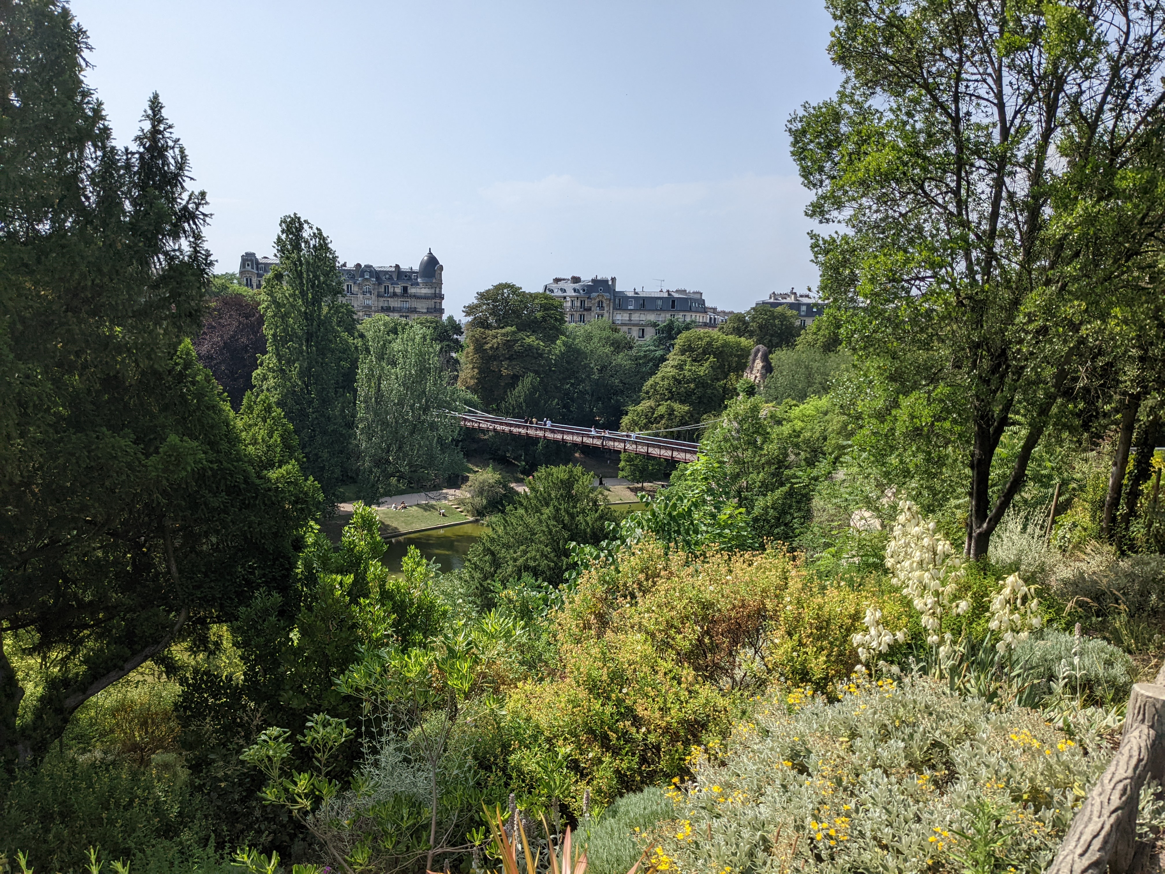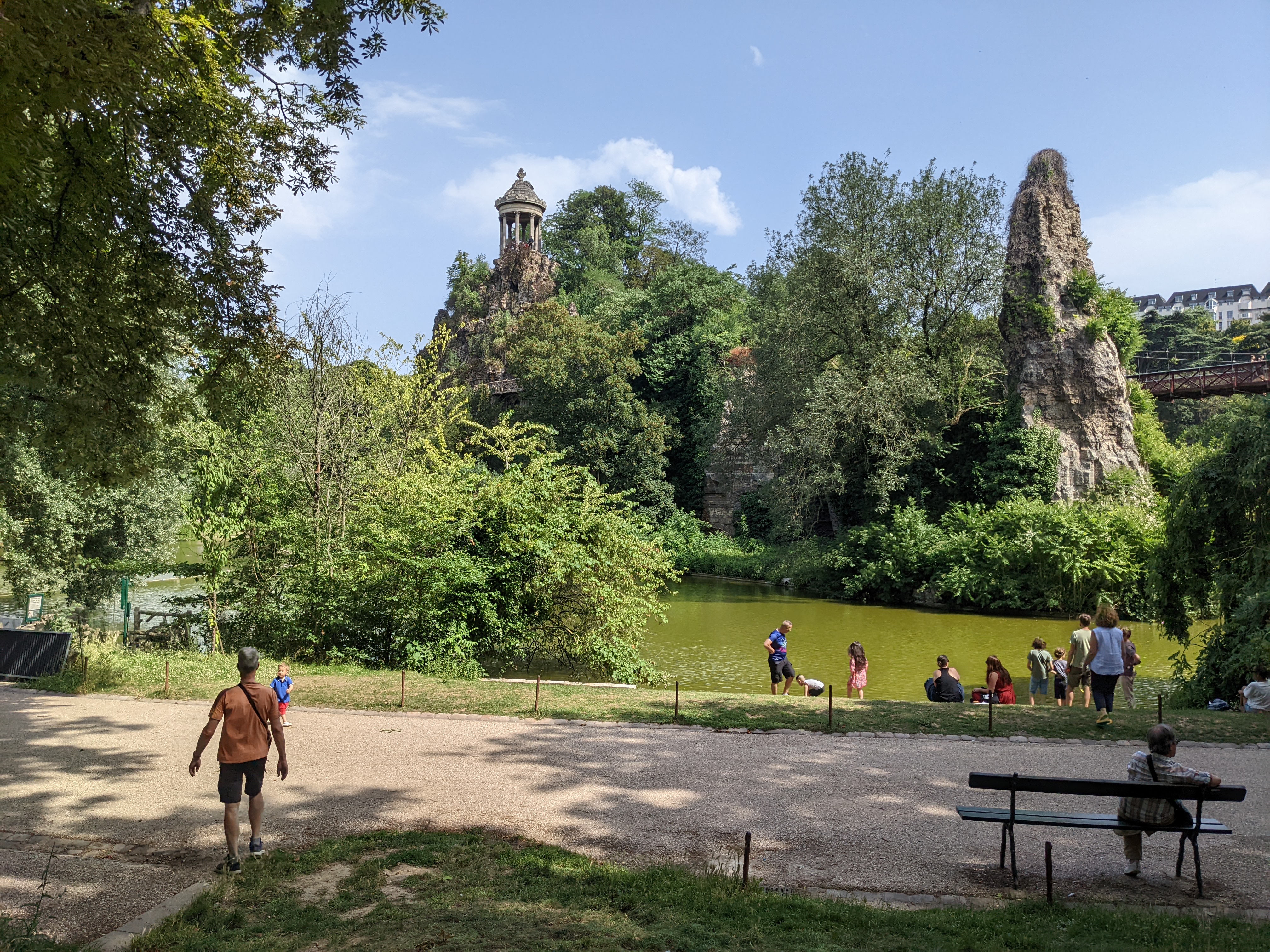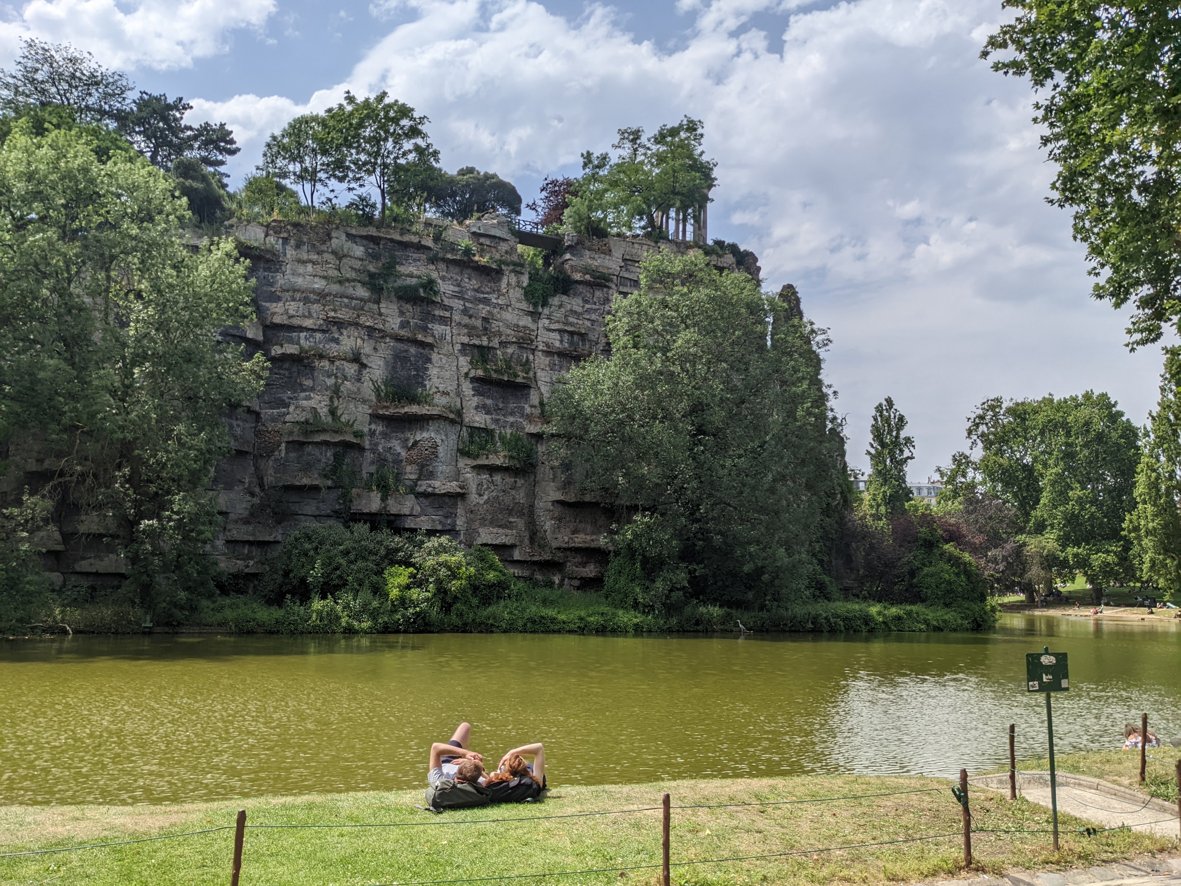 Nach dem doch etwas längeren Abend vorm Eiffelturm mit einer zweiten Flasche Wein begann dieser Tag erstmal mit Ausschlafen. Gegen elf machte ich mich dann aber doch mit der Metro auf den Weg zum Parc des Buttes-Chaumont und besorgte auf dem Weg noch Brunch. Ich hab einen regulären Park erwartet und mich gewundert, warum mir gerade dieser Park empfohlen wurde.