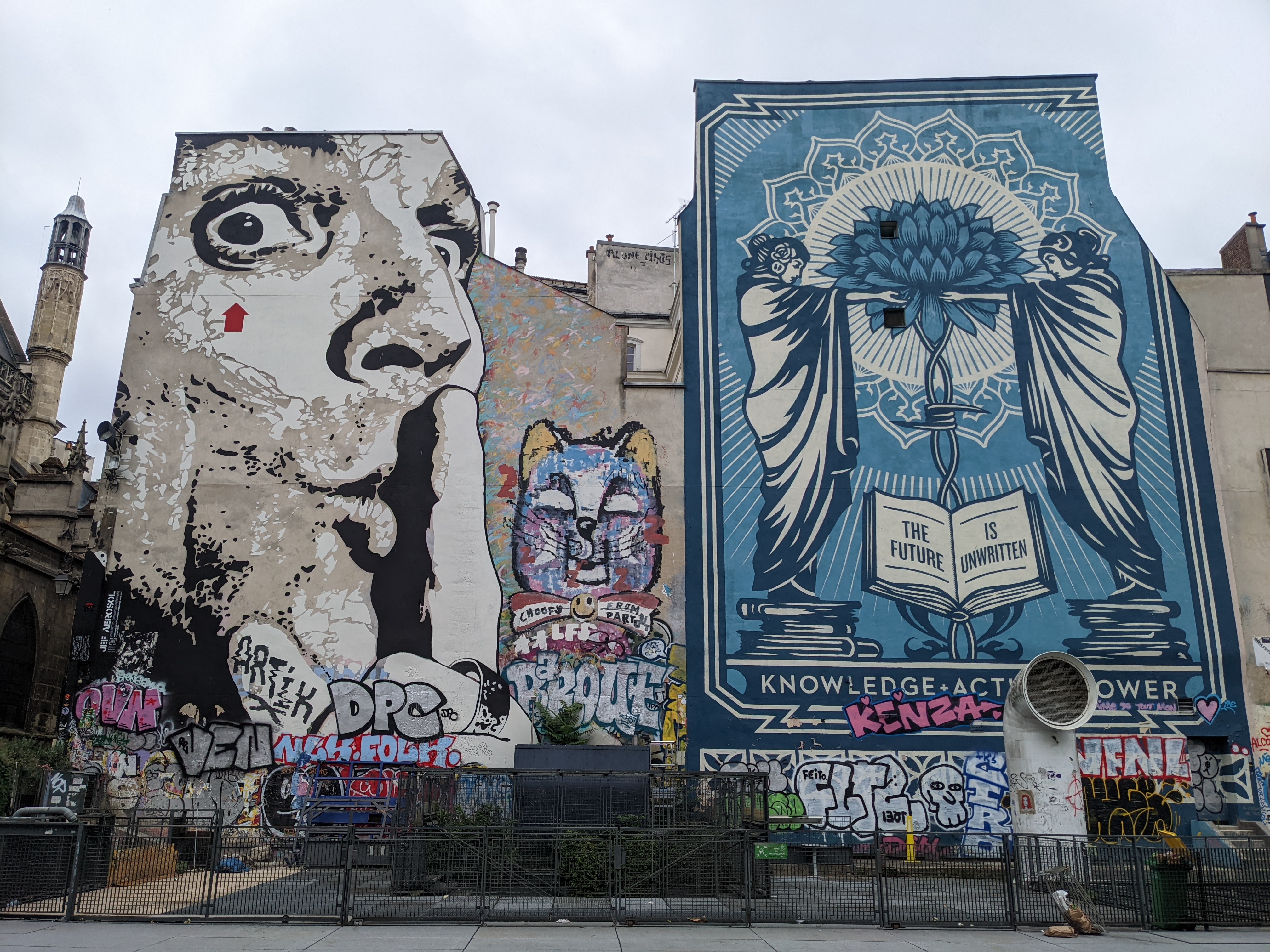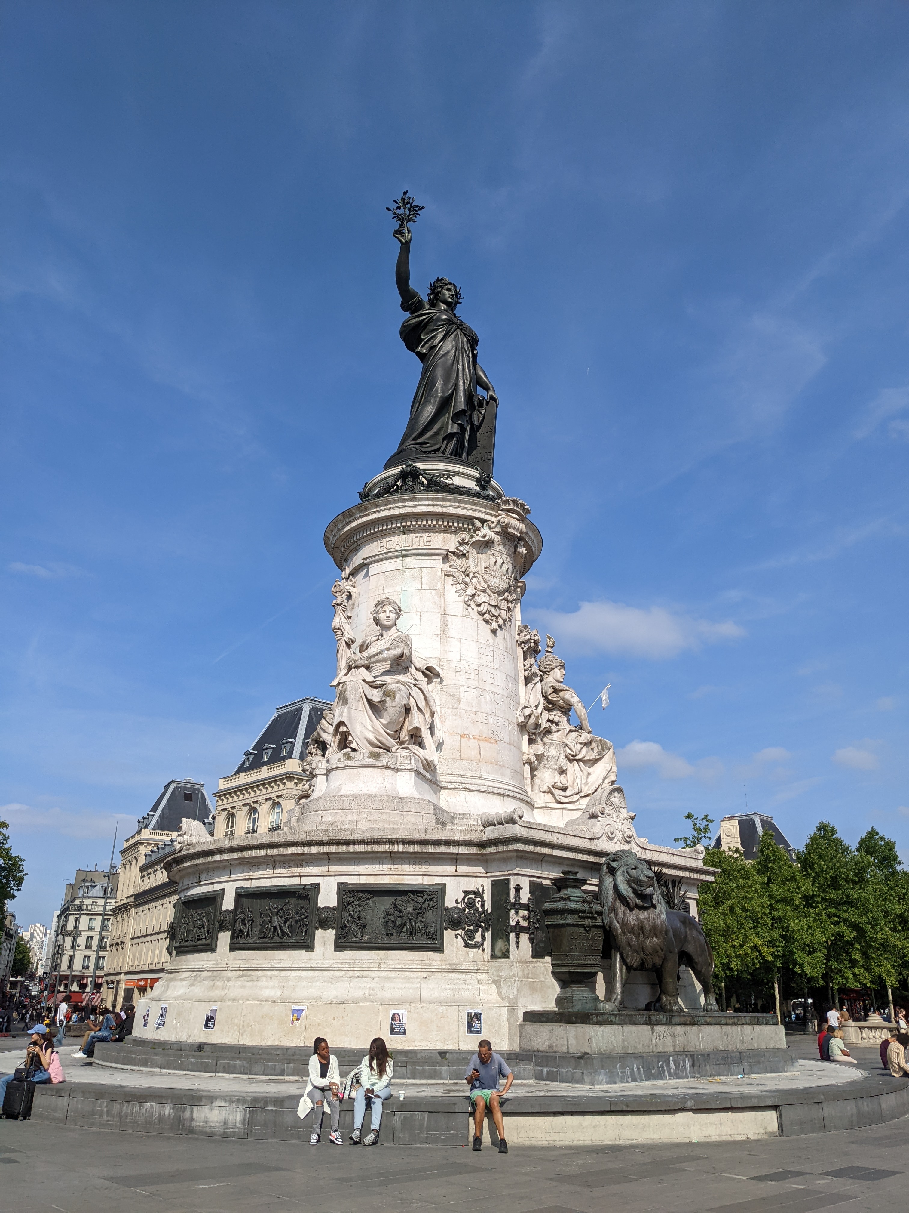 Gegen sechs habe ich dann mein Gepäck aus dem Hotel geholt. Meine Kopfhörer mit lauter Musik auf den Ohren und die aufgerissene Wolkendecke sorgten auf einmal wieder für Motivation. Und so ich bin trotz dem schweren Rucksacks nochmal mit orgendlichem Tempo zu Fuß durch die halbe Stadt. Der Place de la Bastille hat sich nochmals gelohnt. Ansonsten gab es vereinzelt nette Street-Art zu beobachten.