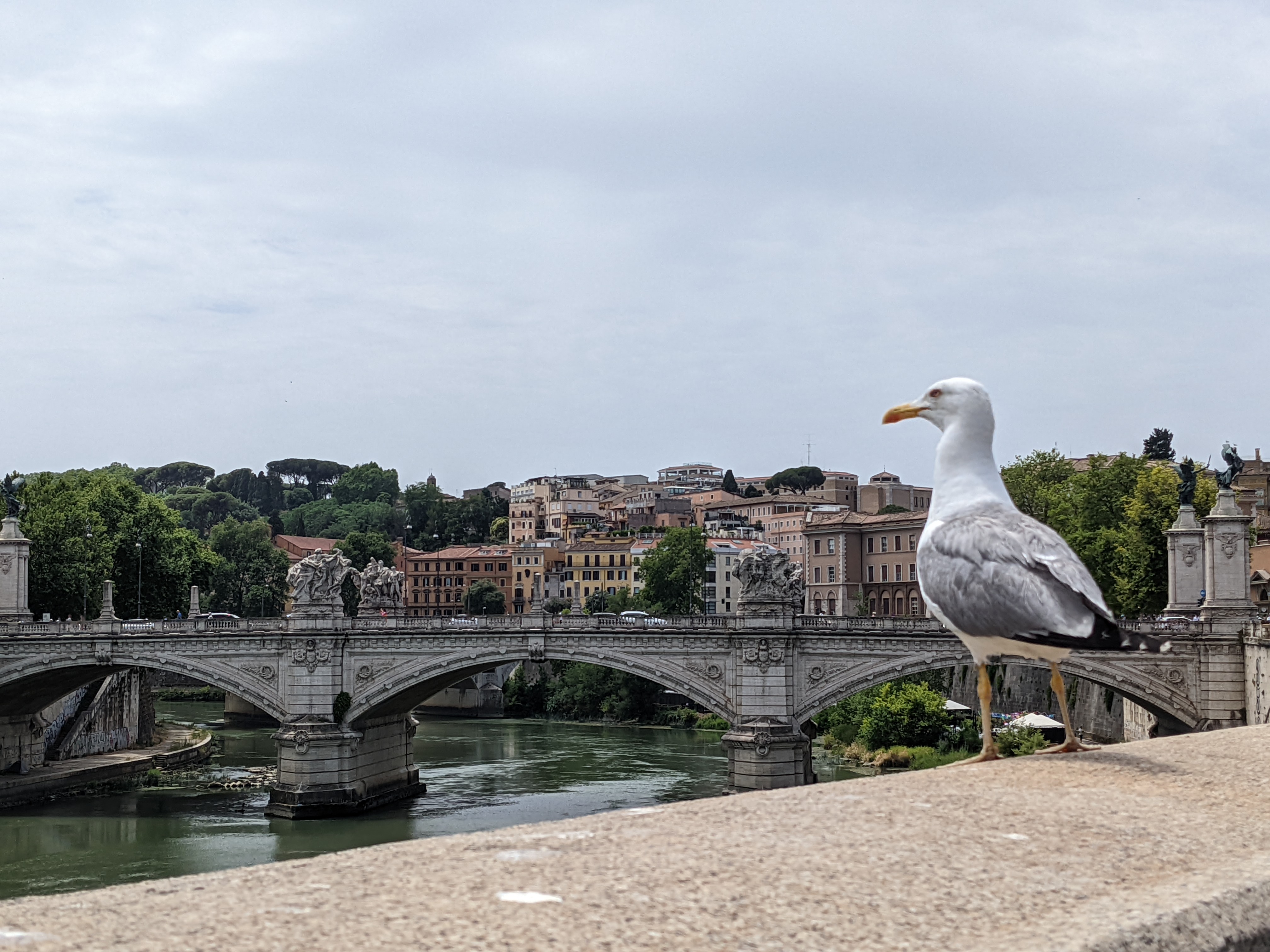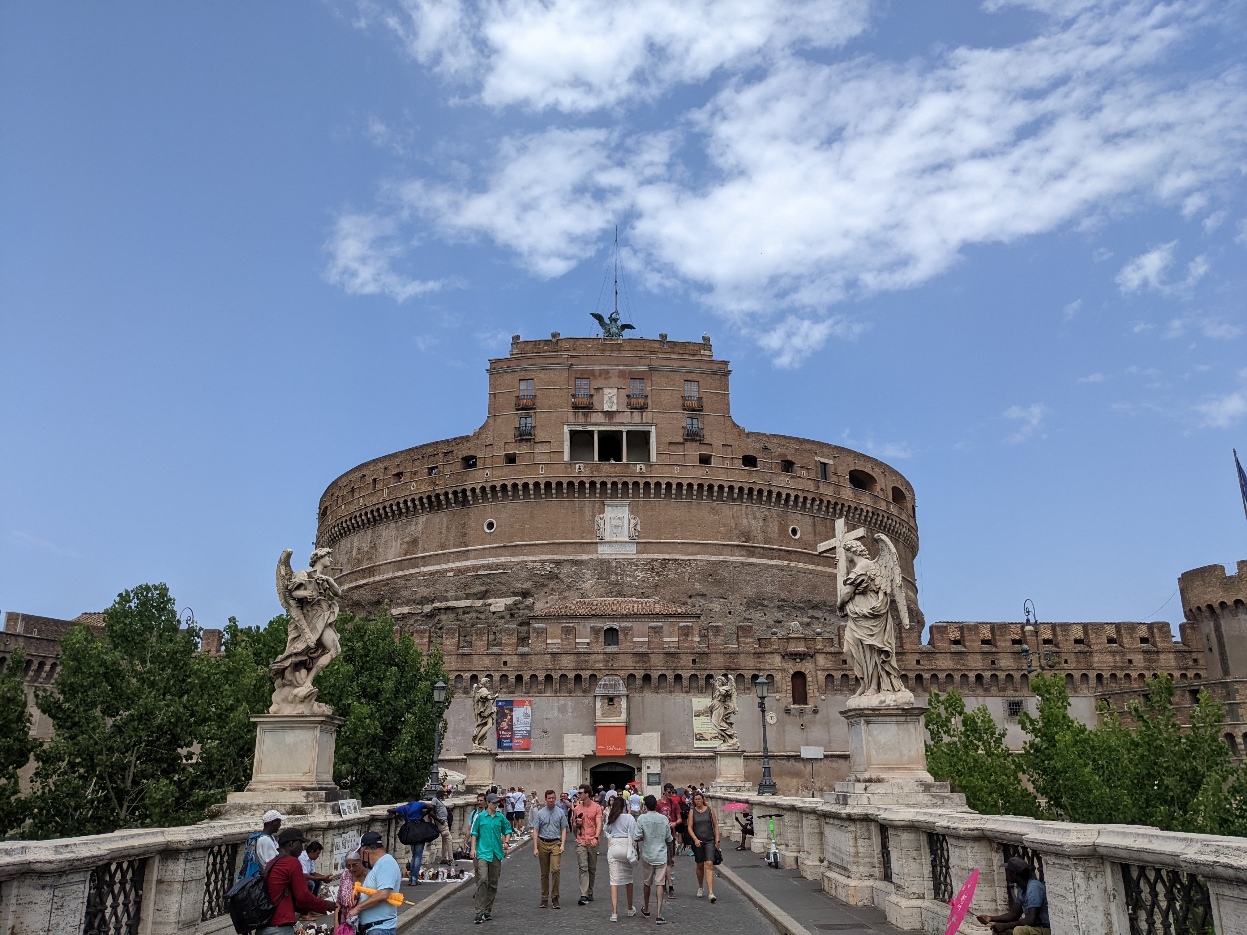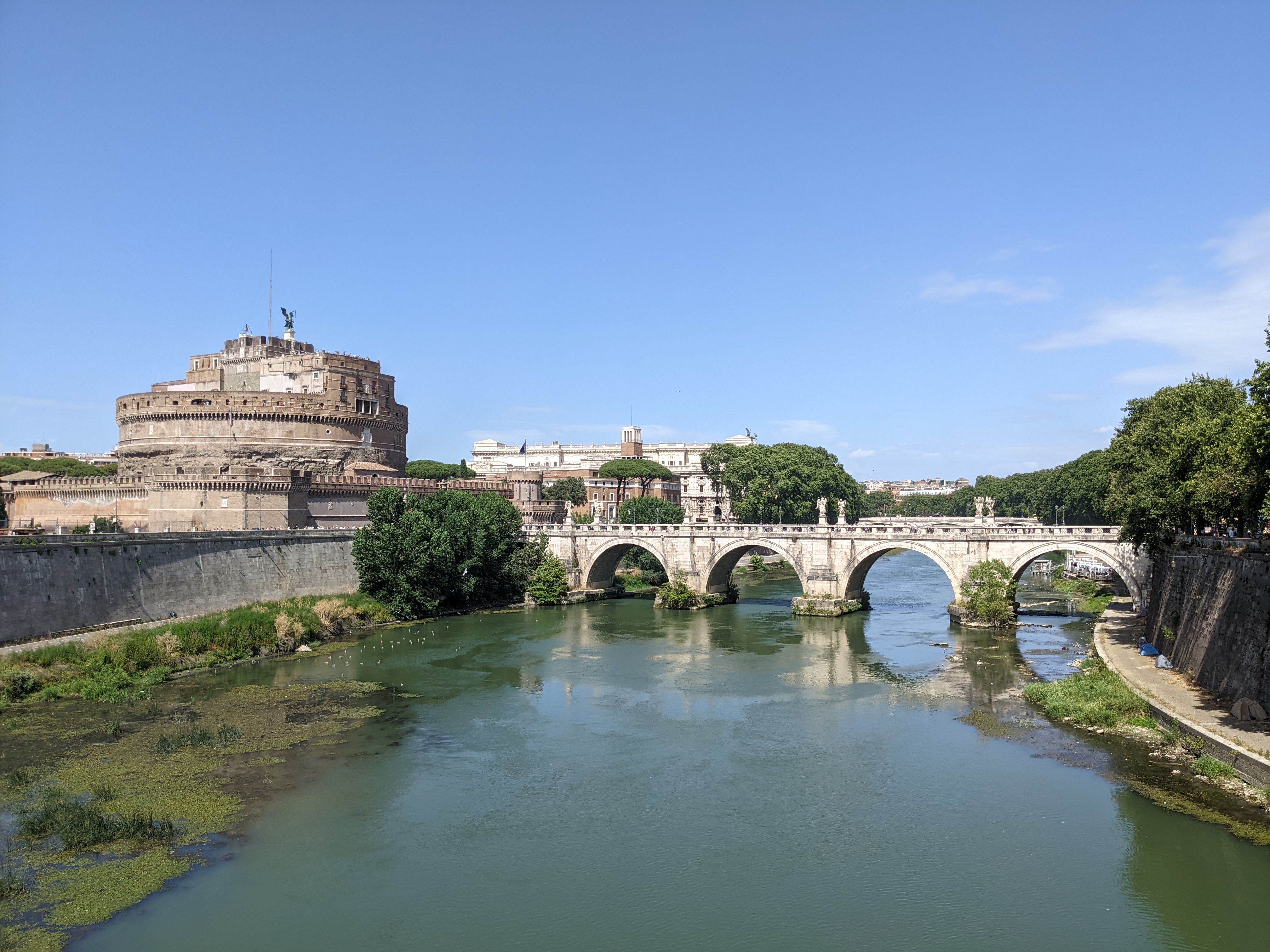 Weiter auf dem Weg zum Petersplatz ging es natürlich über den Tiber, wobei man von der Brücke aus Castel Sant’Angelo (die Engelsburg) sehen konnte. Die Festung steht auf der Liste von Dingen, in die ich unbedingt in Rom rein muss.