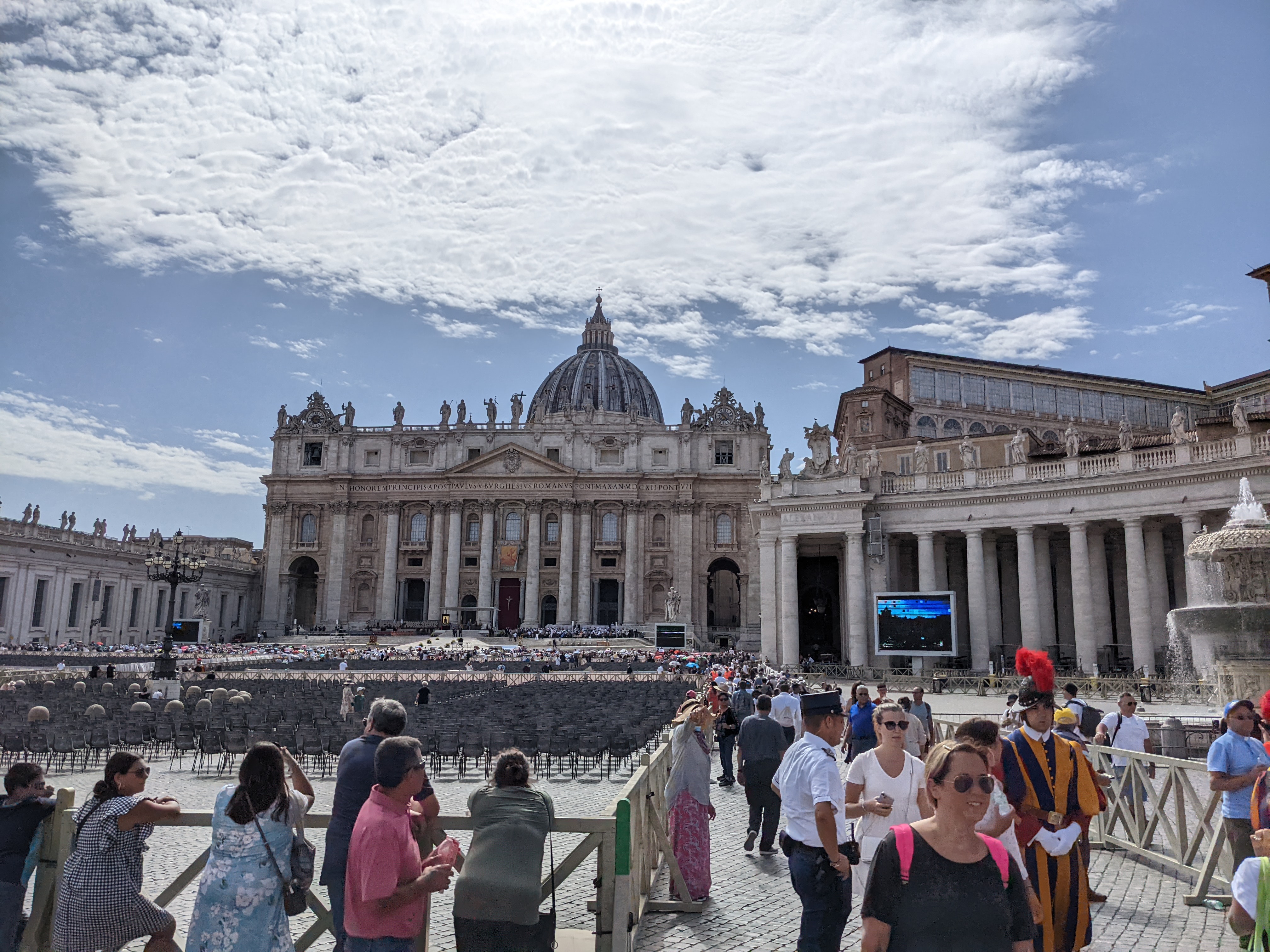 Angekommen am Petersplatz stellte sich herraus, dass die Schweizergarde den Petersplatz abgeriegelt hatte. Es war gerade Heilige Messe. Und da wollte ich nun wirklich nicht teilnehmen. Also keine Chance herauszufinden, wie lange die Schlange zum Petersdom nun wirklich ist.