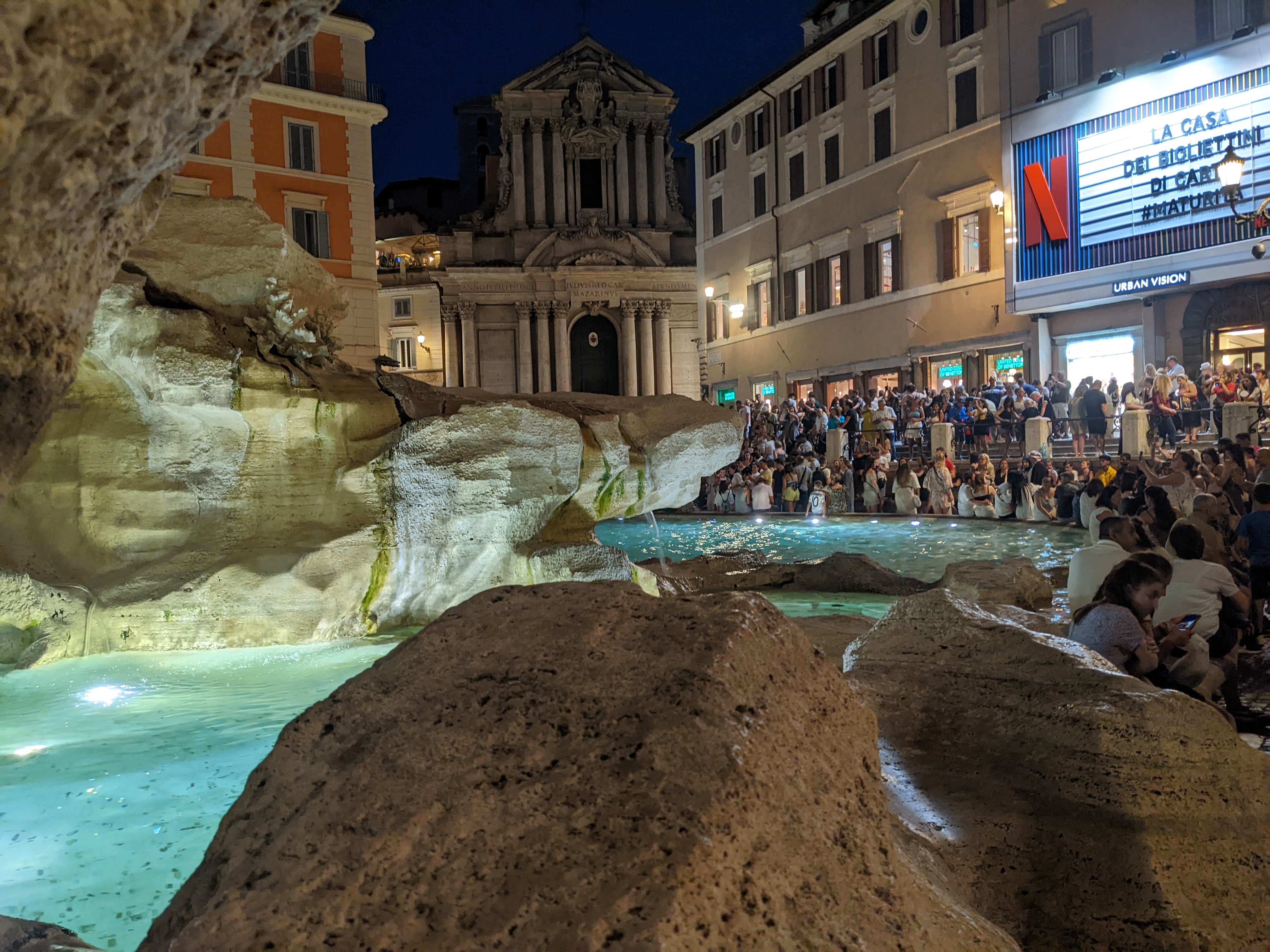 Auf dem Weg zurück hatte ich noch die super Idee, dass der Trevi-Brunnen bei Nacht vielleicht leer und nett angestrahlt sei. Weder noch.