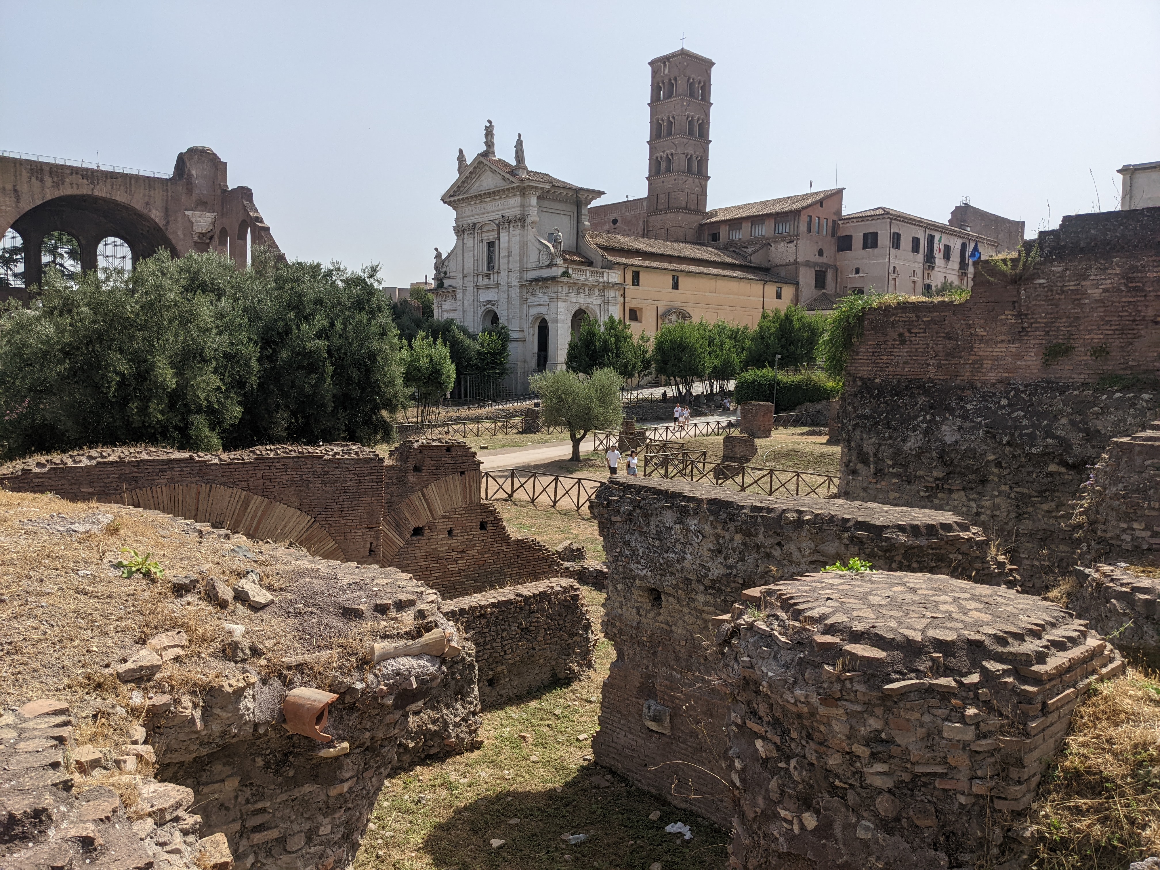 Weiter ging es ins Forum Romanum, also den historischen Marktpklatz vom alten Rom. Direkt daneben ging es auch noch den Palatin hoch. Das ist einer der Hügel von Rom mit dem ältesten Teil der Stadt. War beides im Kolosseum-Ticket enthalten und bietet sich auch einfach an, wenn man einmal da ist. Nicht so beeindruckend wie die Arena, aber schon ganz cool.