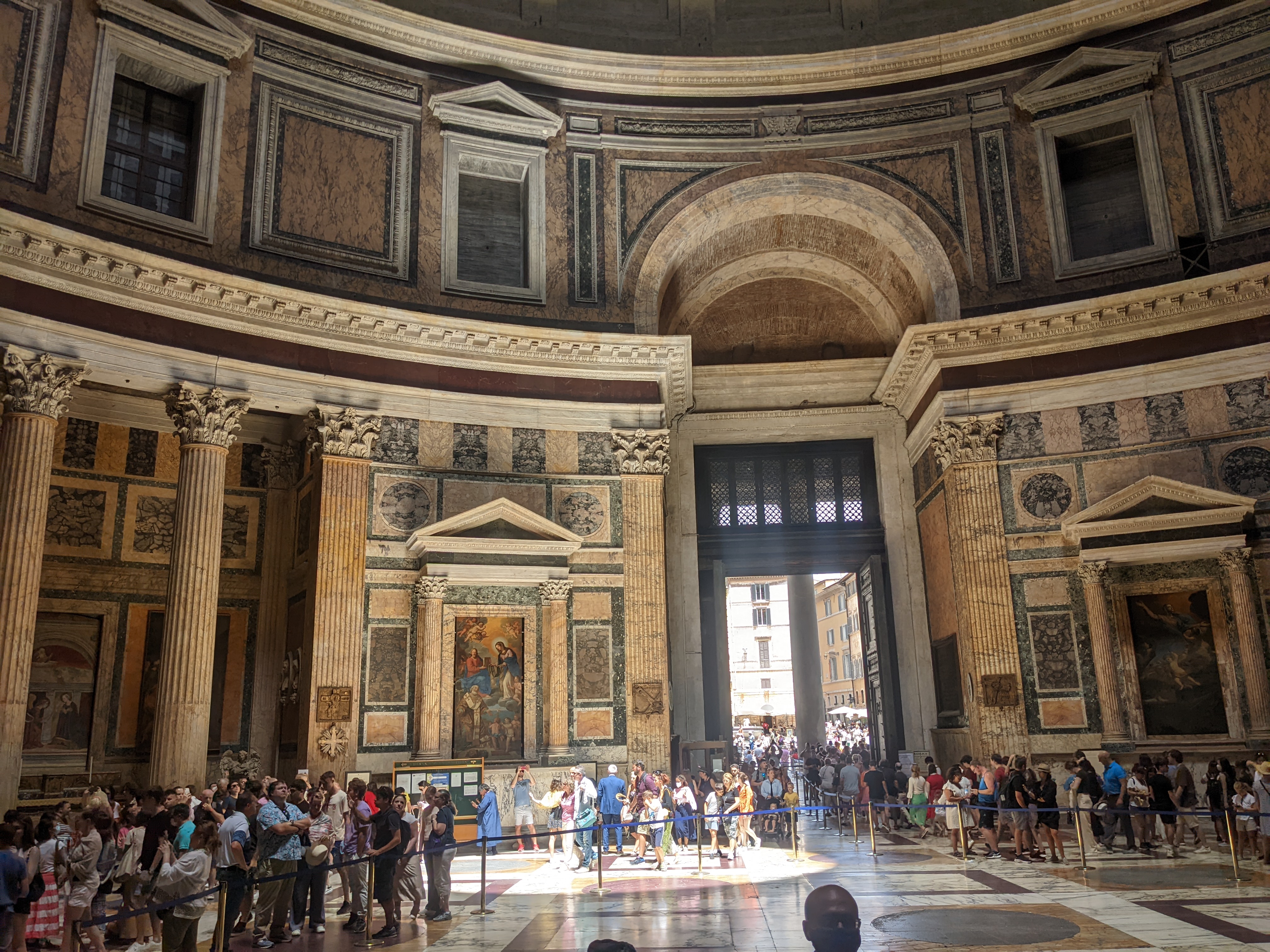 Angekommen am Pantheon gab es dieses mal keine Schlange. Man konnte einfach rein gehen. Eine der ältesten Kirchen Roms, die bekannt für das Oculus in der Kuppel ist. Auch das ist relativ schlecht auf einem Foto abzubilden, aber man sieht deutlich den Lichtkegel der einstrahlenden Sonne. Da muss man selbst mal dagewesen sein. Es lohnt sich.