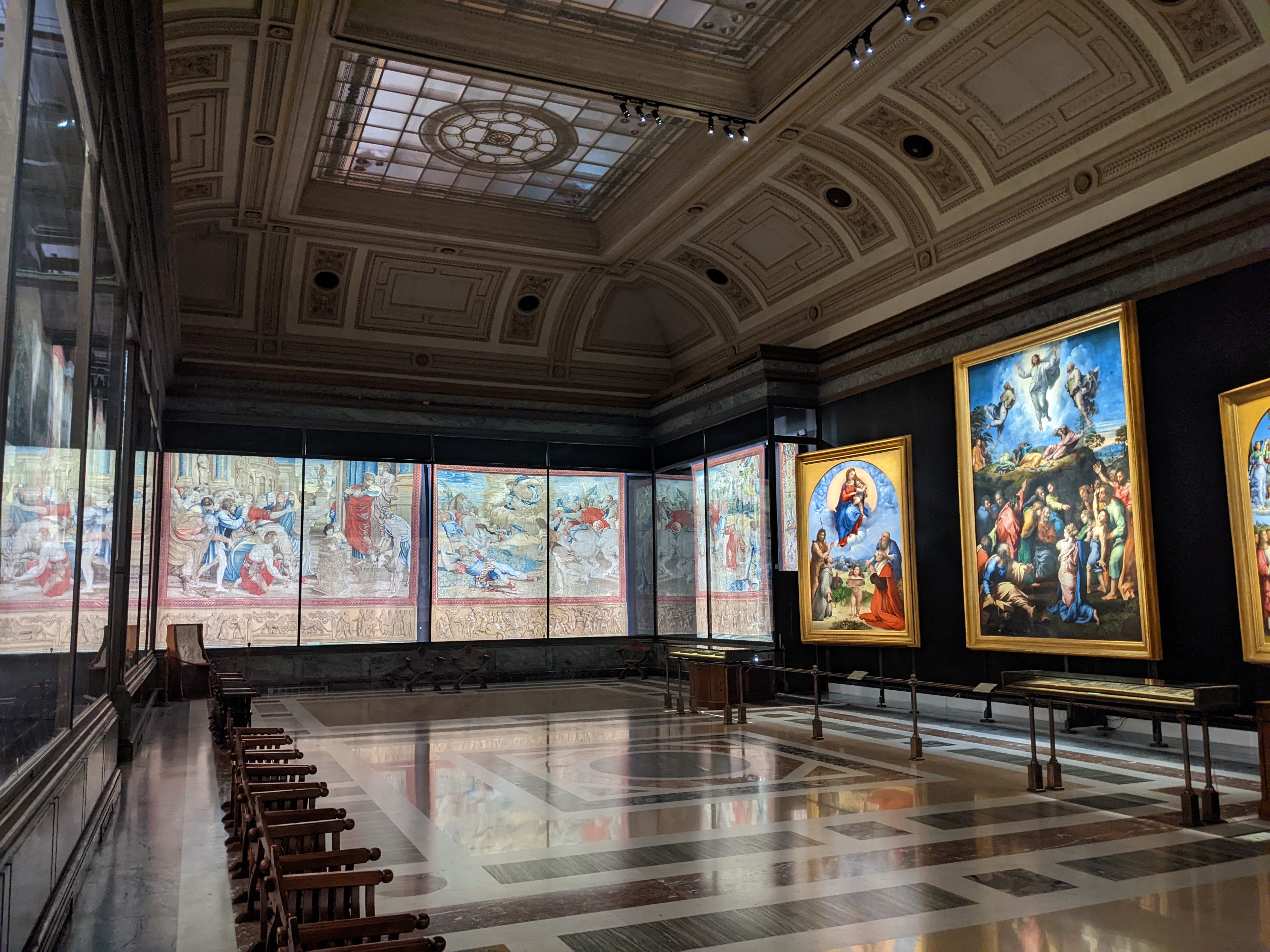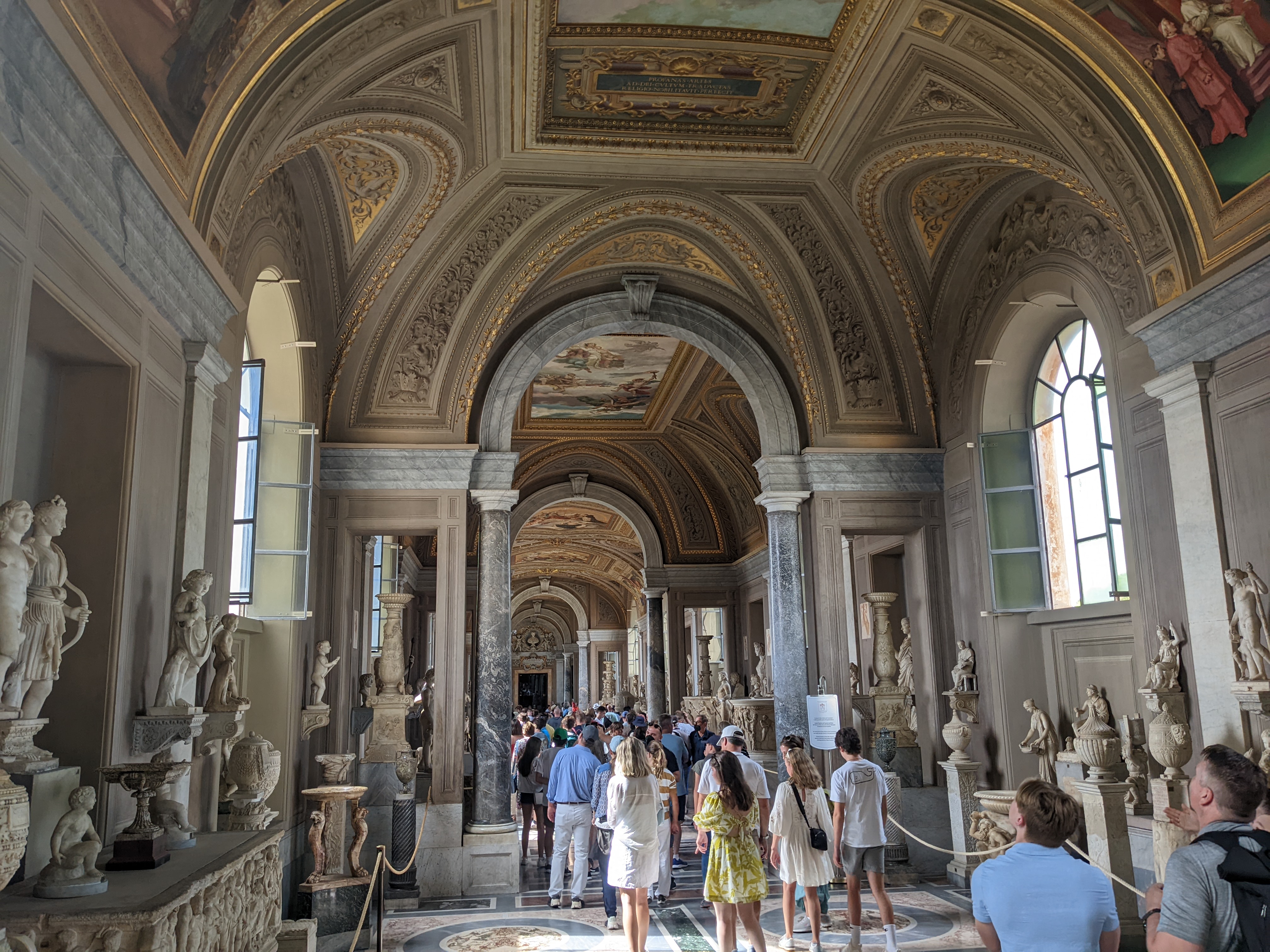 Der gesamte Weg ist aber nur darauf ausgelegt, dass man ein bischen Zeit verbringt, bevor es zum vemeintlichen Highlight, der Sixtinischen Kapelle geht. Dabei gibt es auf dem festgelegten Weg noch einige optionale Ausstellungen, die man sich unbedingt sparen sollte. Ich habe mir zwei angetan und bin immernoch traurig um die verlorenen fünf Minuten Lebenszeit. Eine von beiden hatte ungelogen 400 praktisch identische Vasen aus der Privatsammlung von Papst Kermit. Das ist vielleicht nicht der ganz richtige Vorname, aber ich hab mir nur den gemerkt.