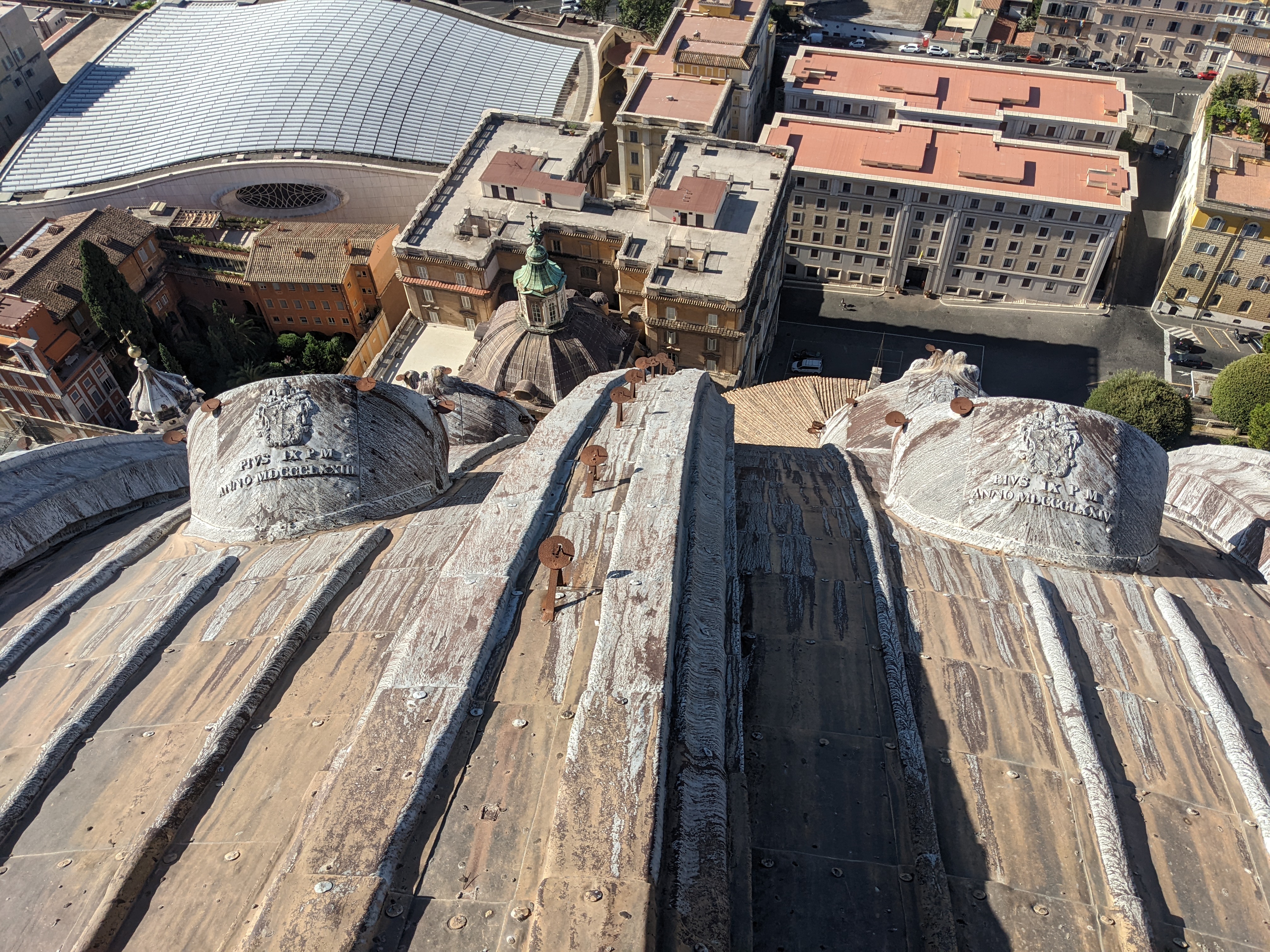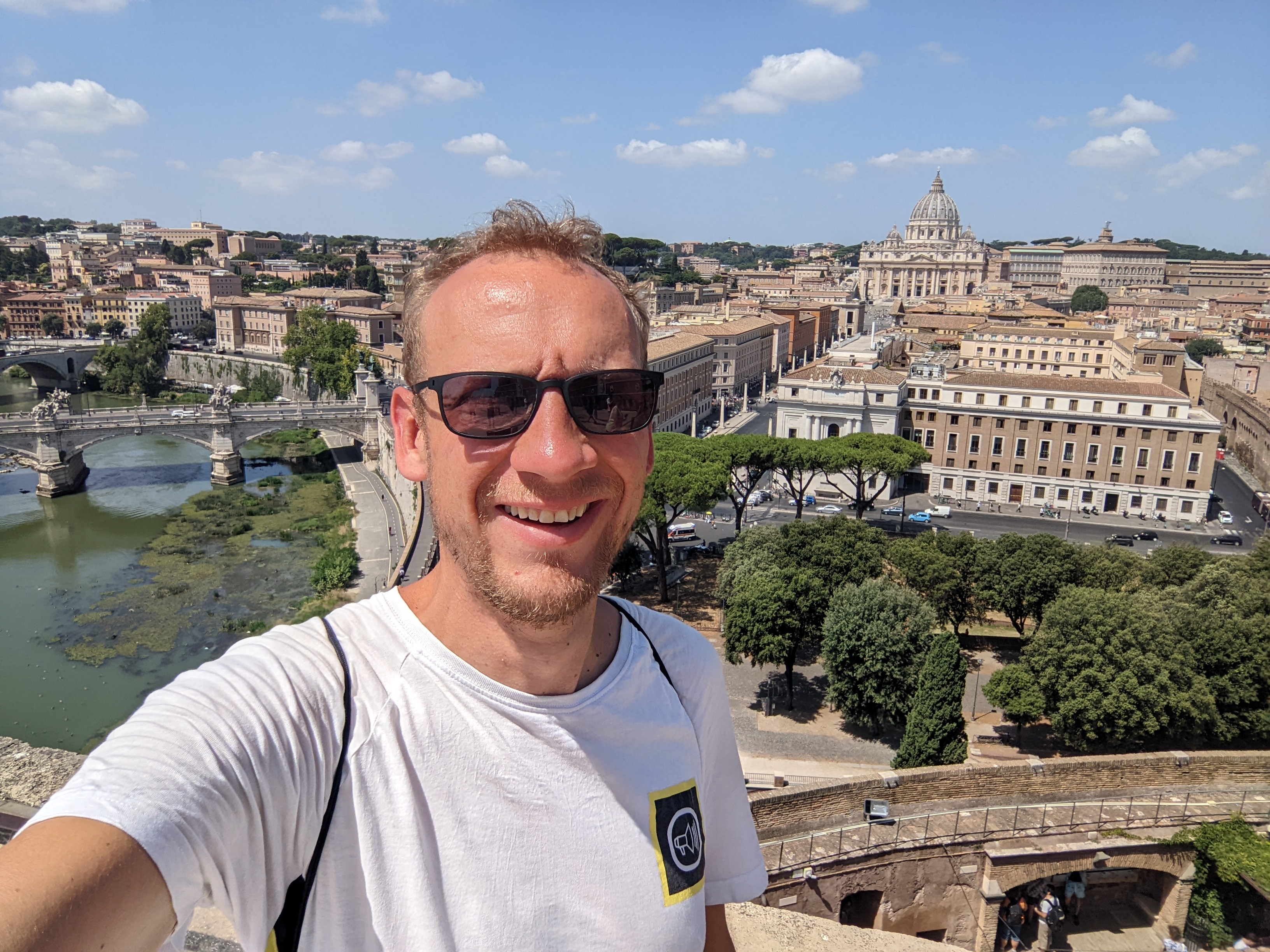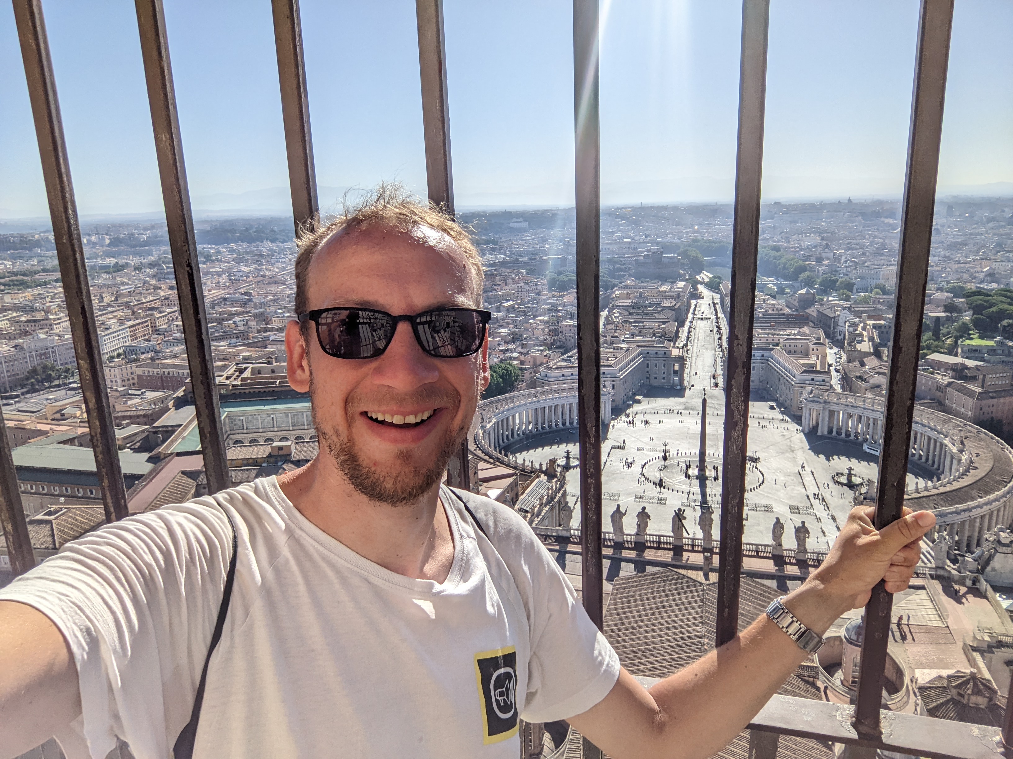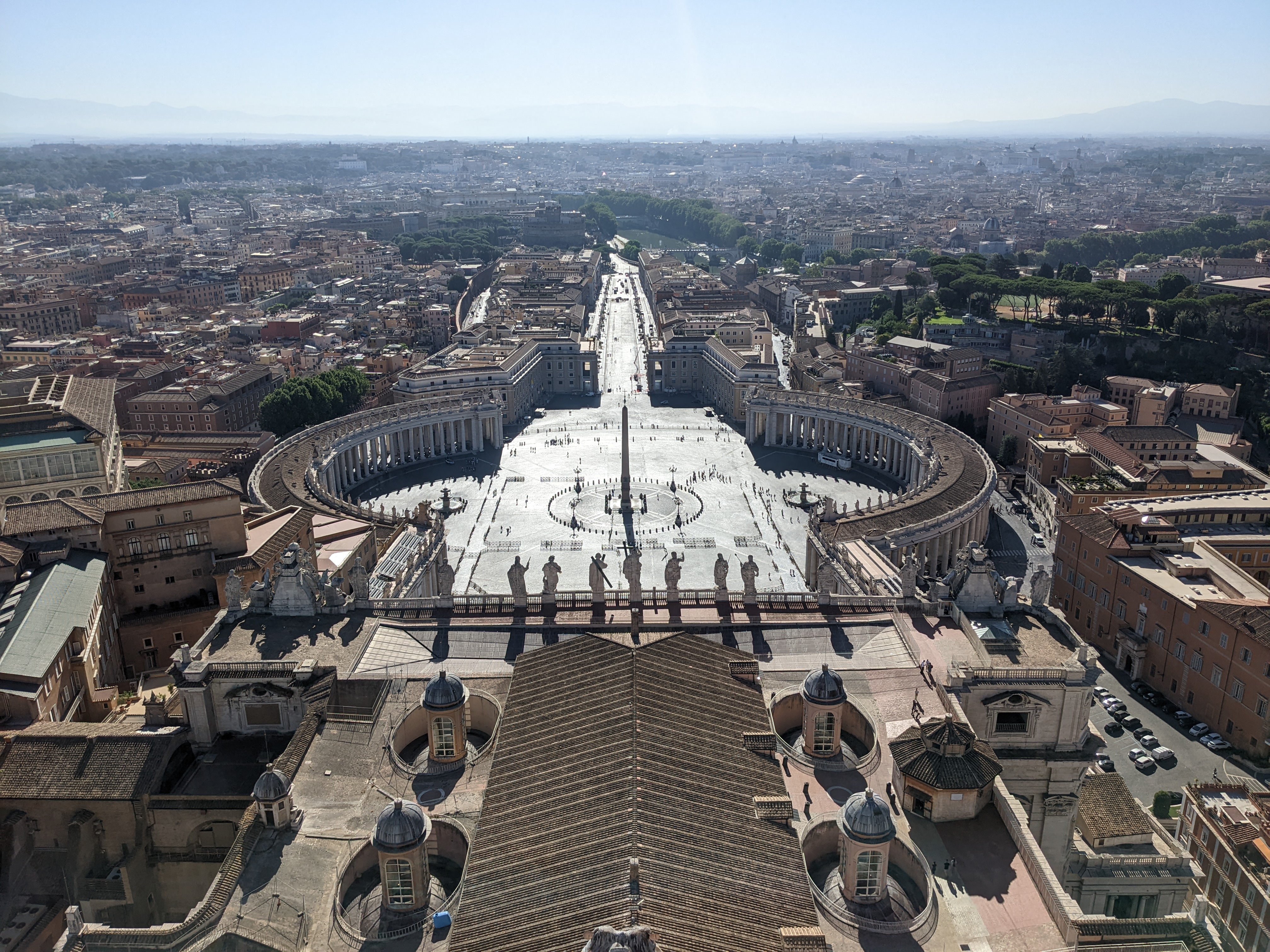 Ich hab mich bestimmt eine halbe Stunde oben aufgehalten und bin mehrfach rund herum, weil es immer noch irgendetwas am Horizont zu entdecken gibt. Mein Highlight von Rom, was sogar die Engelsburg noch geschlagen hat. Ich verstehe, warum so viele Leute dort hochwollen und die langen Schlangen in Kauf nehmen.