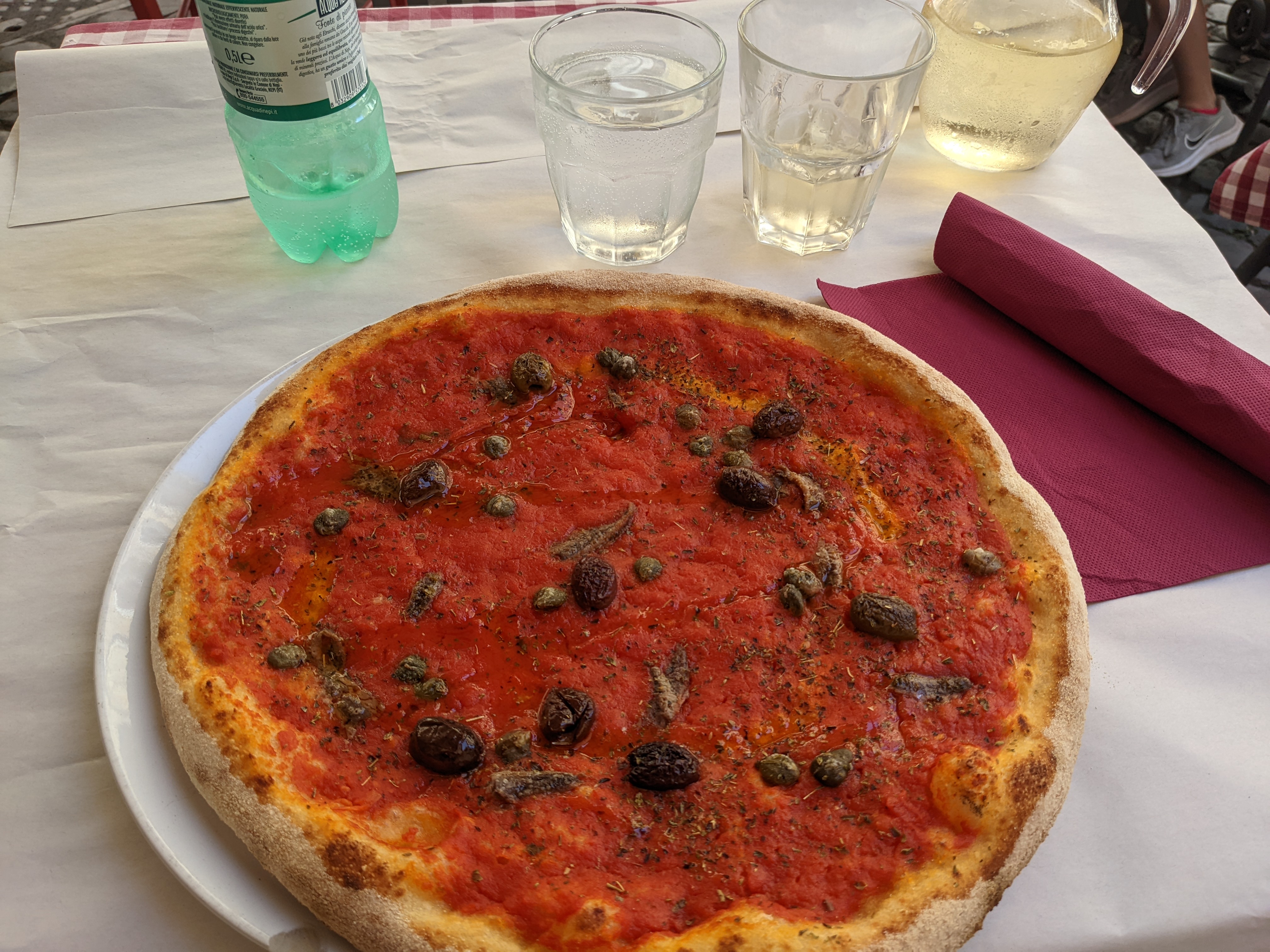 Auf ging es nach Trastevere auf eine leckere Pizza zum Mittag. Wenn man schon so lange wach ist, kann man zum Mittag auch mal ‘nen halben Liter Hauswein bestellen.