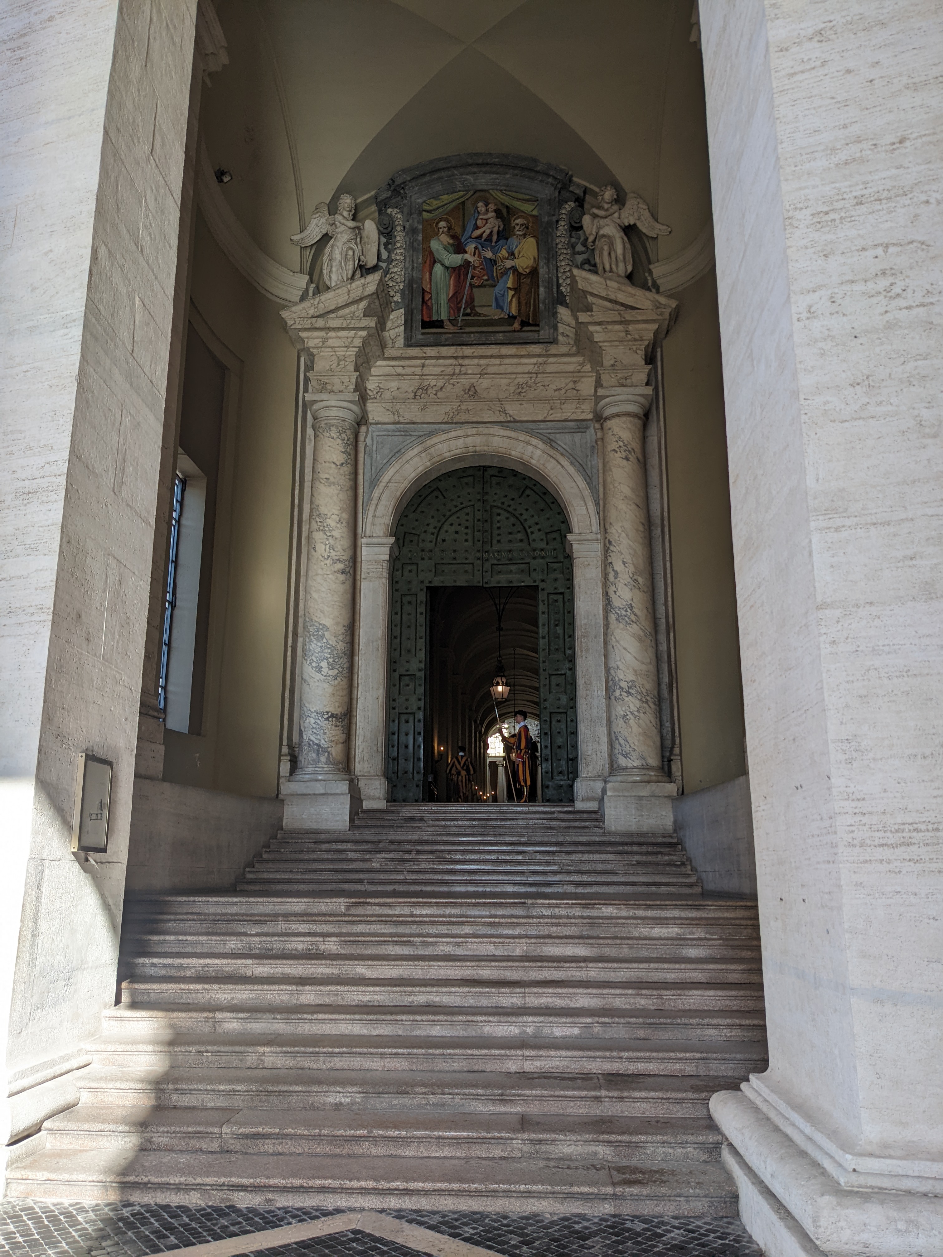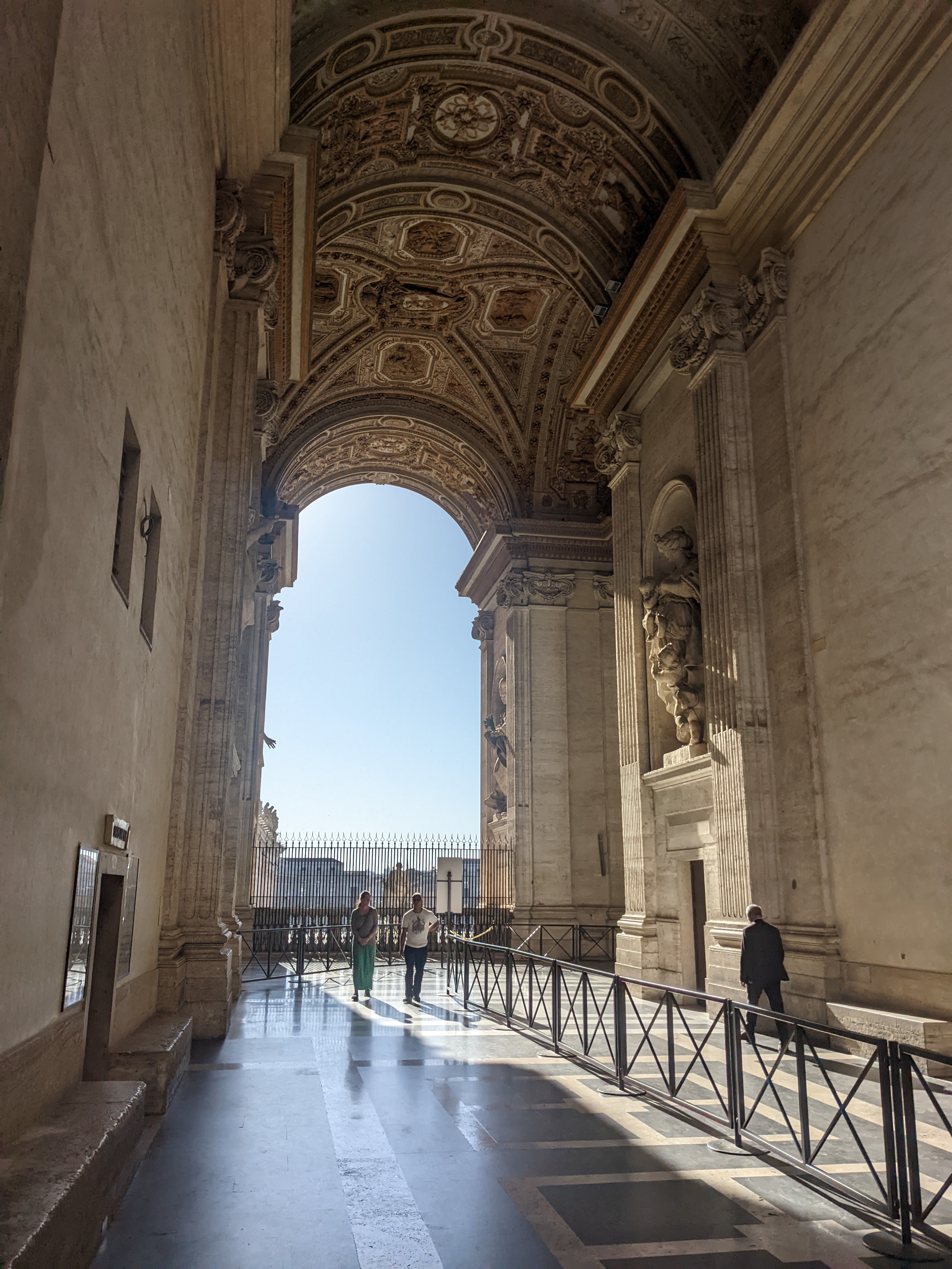 Auch hier war ich nach 2 Stunden wieder draußen auf dem Petersplatz. Die Schlange zum Eintritt war mittlerweile ca. 50 Meter länger als um 8 Uhr, also immernoch vertretbar. Man hätte vielleicht 30 Minuten gebraucht um rein zu kommen.