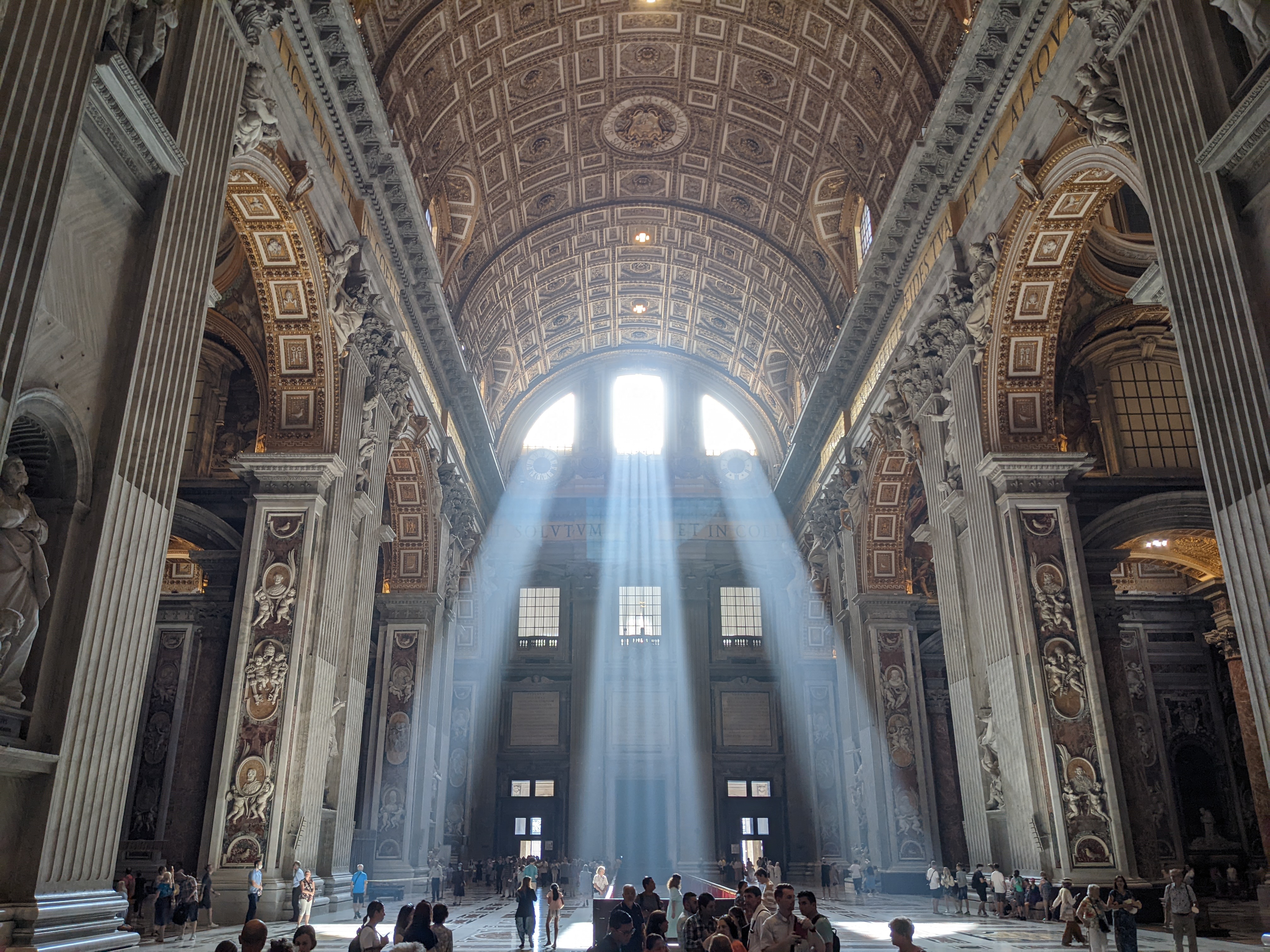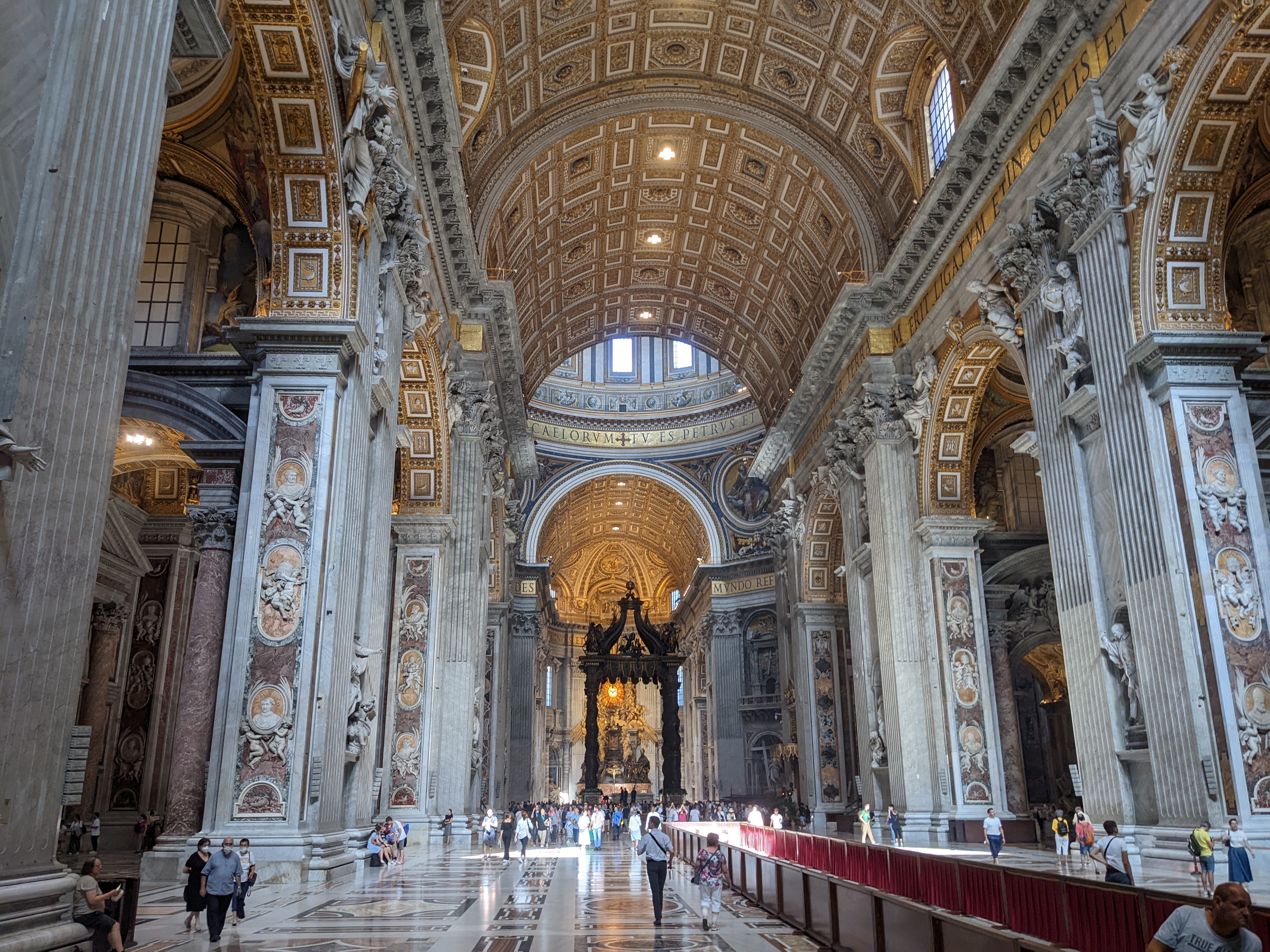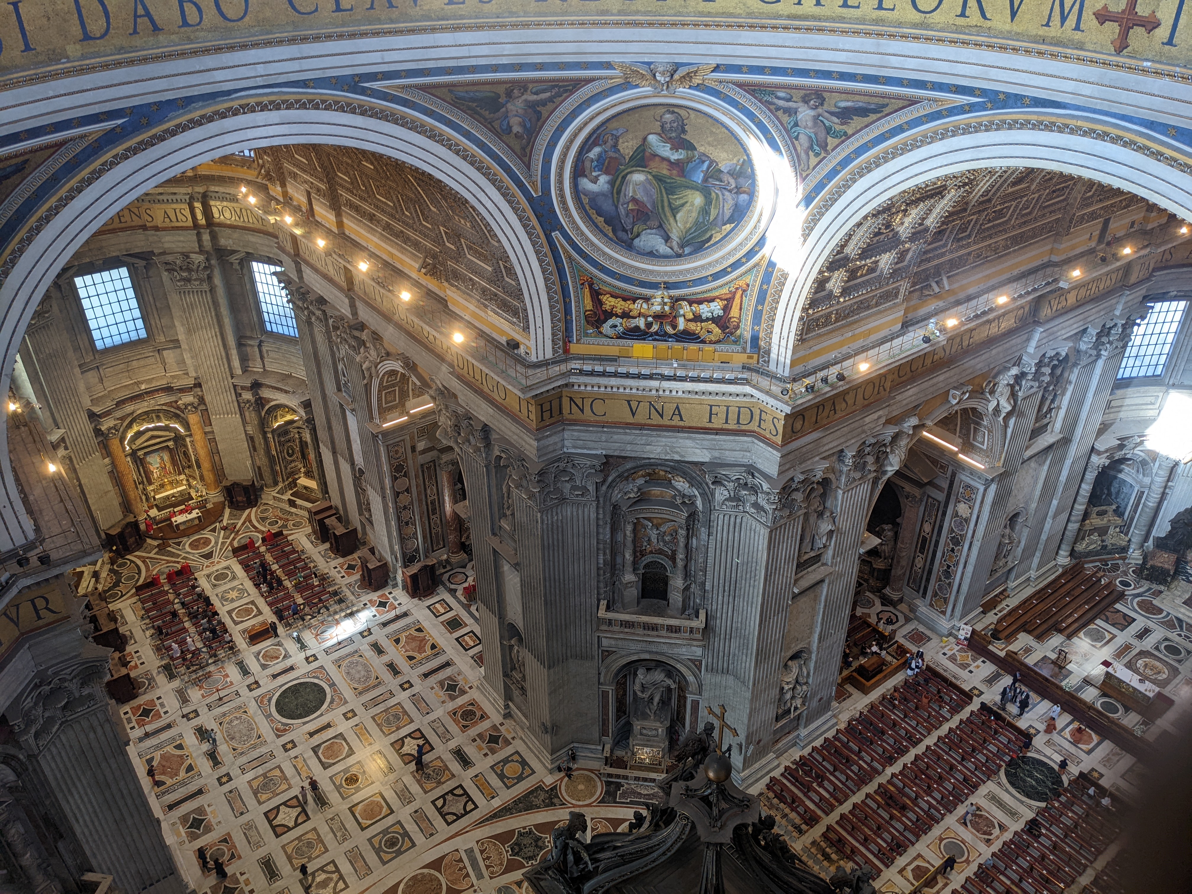 Nach dem Abstieg ging es in den Petersdom selber. Eine beeindruckende Kathedrale, der Ablasshandel hat sich für die Katholische Kirche offensichtlich gelohnt. Tolle Architektur, aber die kirchlichen Gemälde, Skulpturen, Grabmäler und was es sonst noch so gibt waren für mich eher weniger spannend.