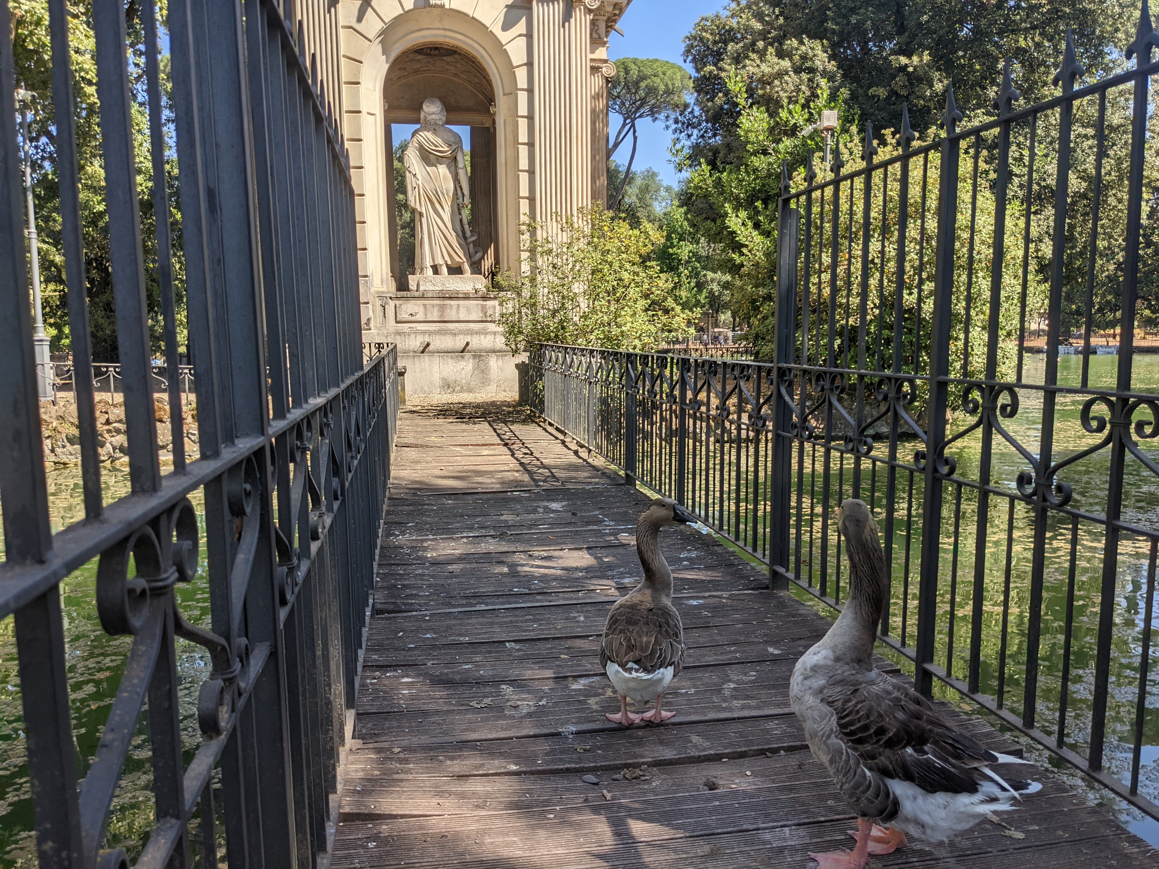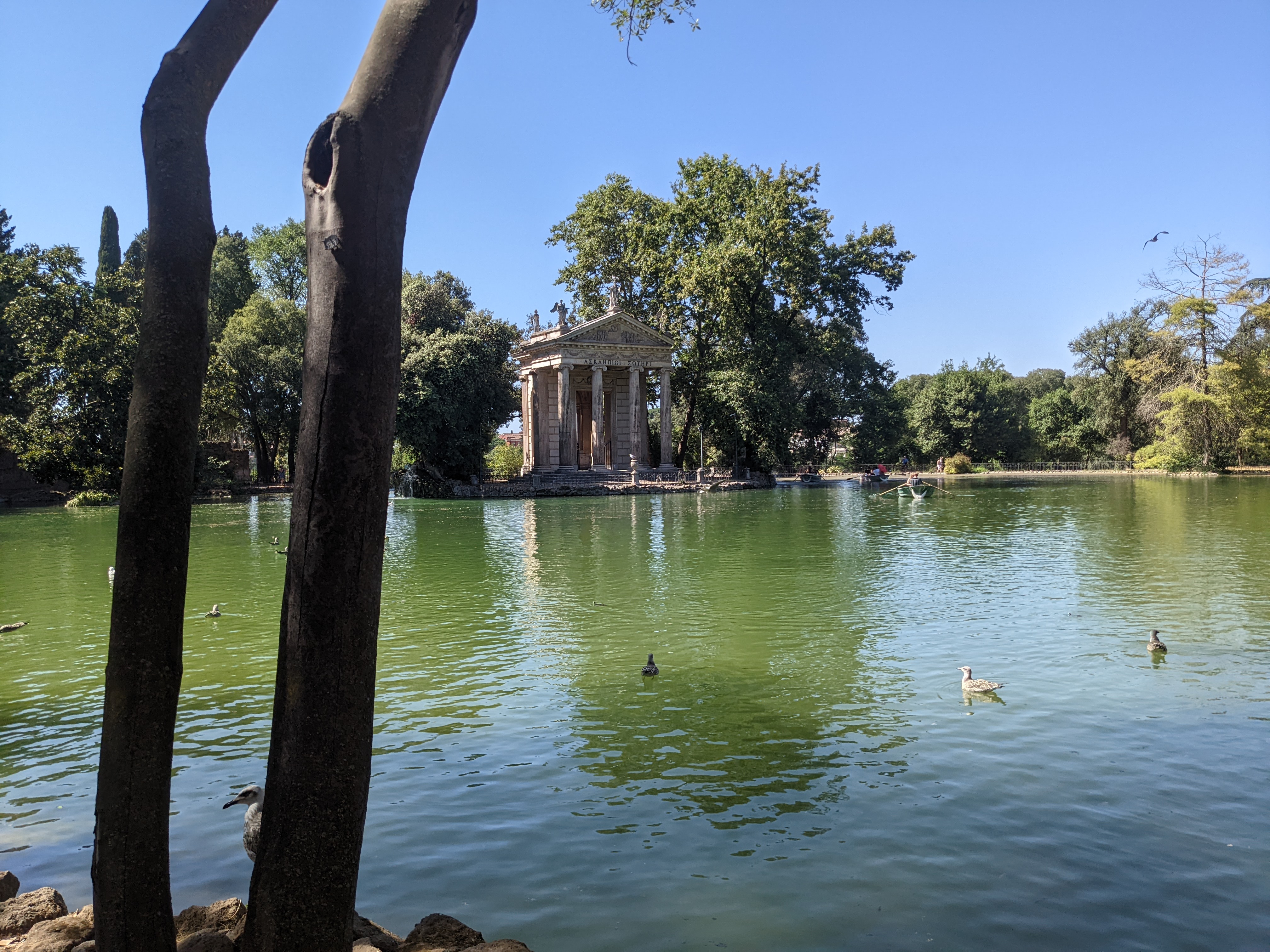 Ich hatte dann aber irgendwie auch genug von Rom. Auf ins Hotel, den großen (und schweren) Rucksack holen und nochmal 45 Minuten durch die Stadt in den Park “Villa Borghese”. Etwas ab vom Schuss, aber echt schön und ruhig. Nach dieser Wanderung durch die pralle Sonne war ich dann aber auch bedient für den Tag und hab den Park nur kurz erkundet. Die meiste Zeit habe ich im Schatten gedöst, gelesen, gebloggt.
