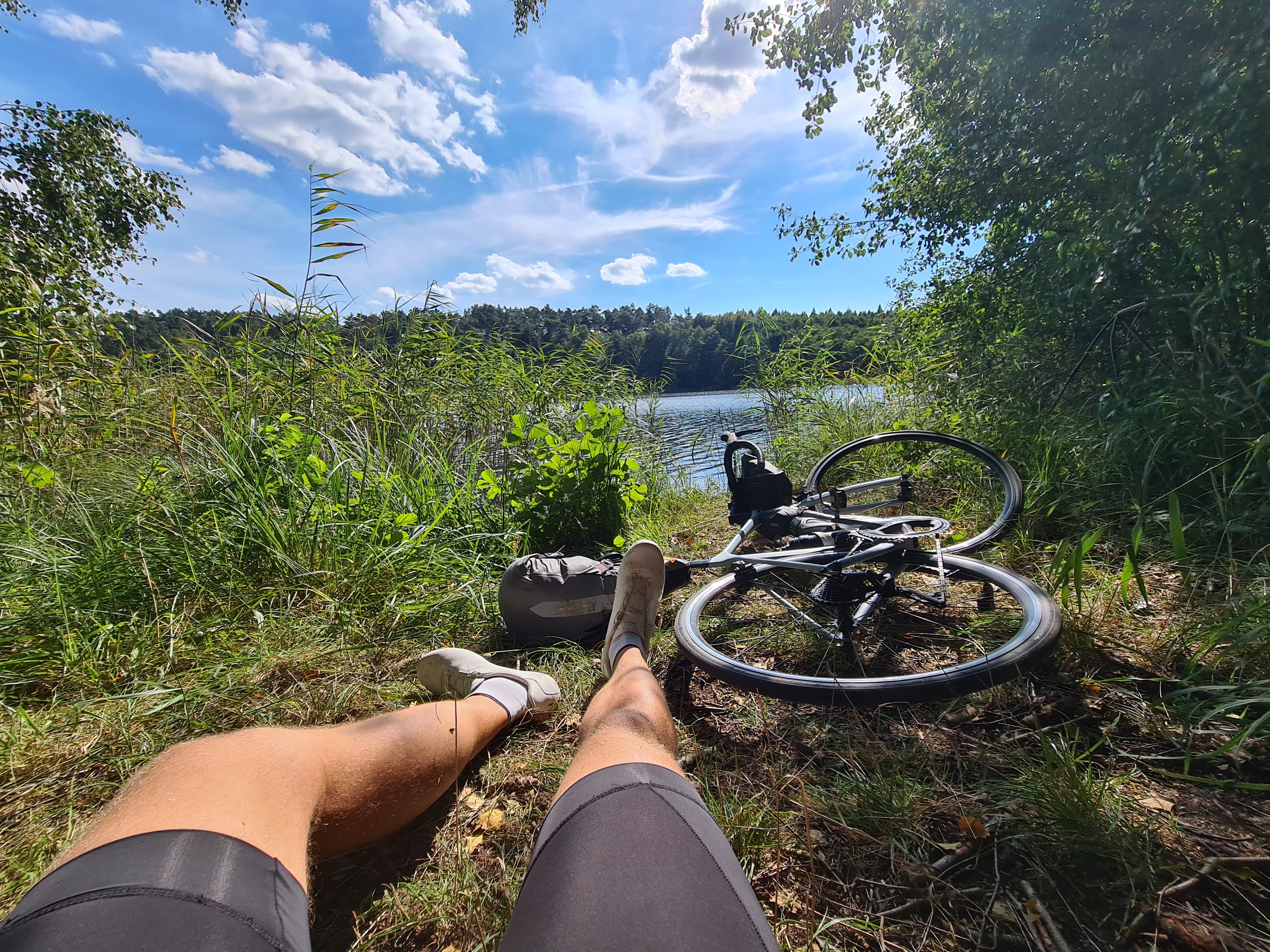 bis krakow gequält, weil scheiss boden mit sand. 10 km schönen teil geskippt, weil wir wirklich hunger hatten. bäckerei/edeka