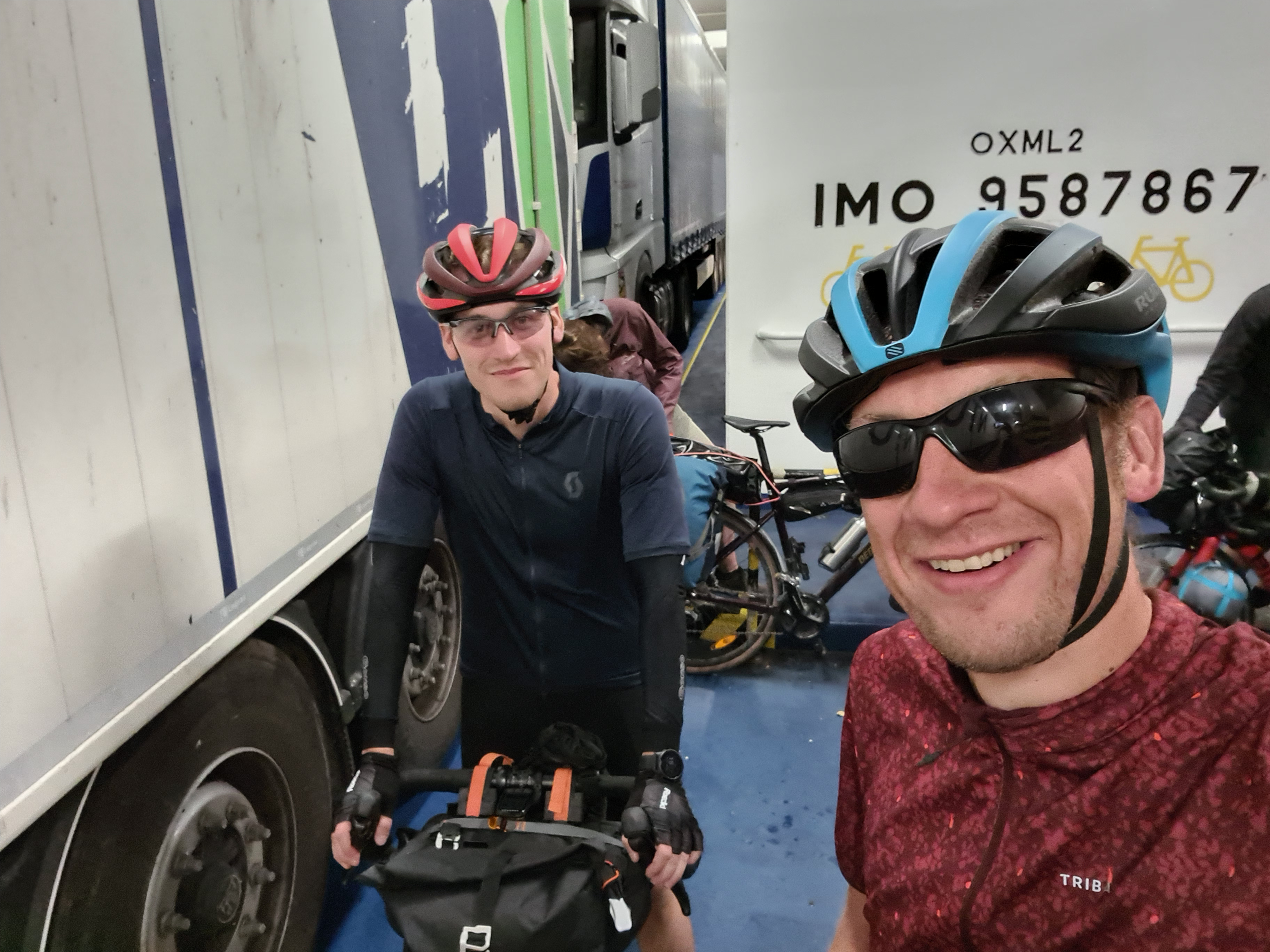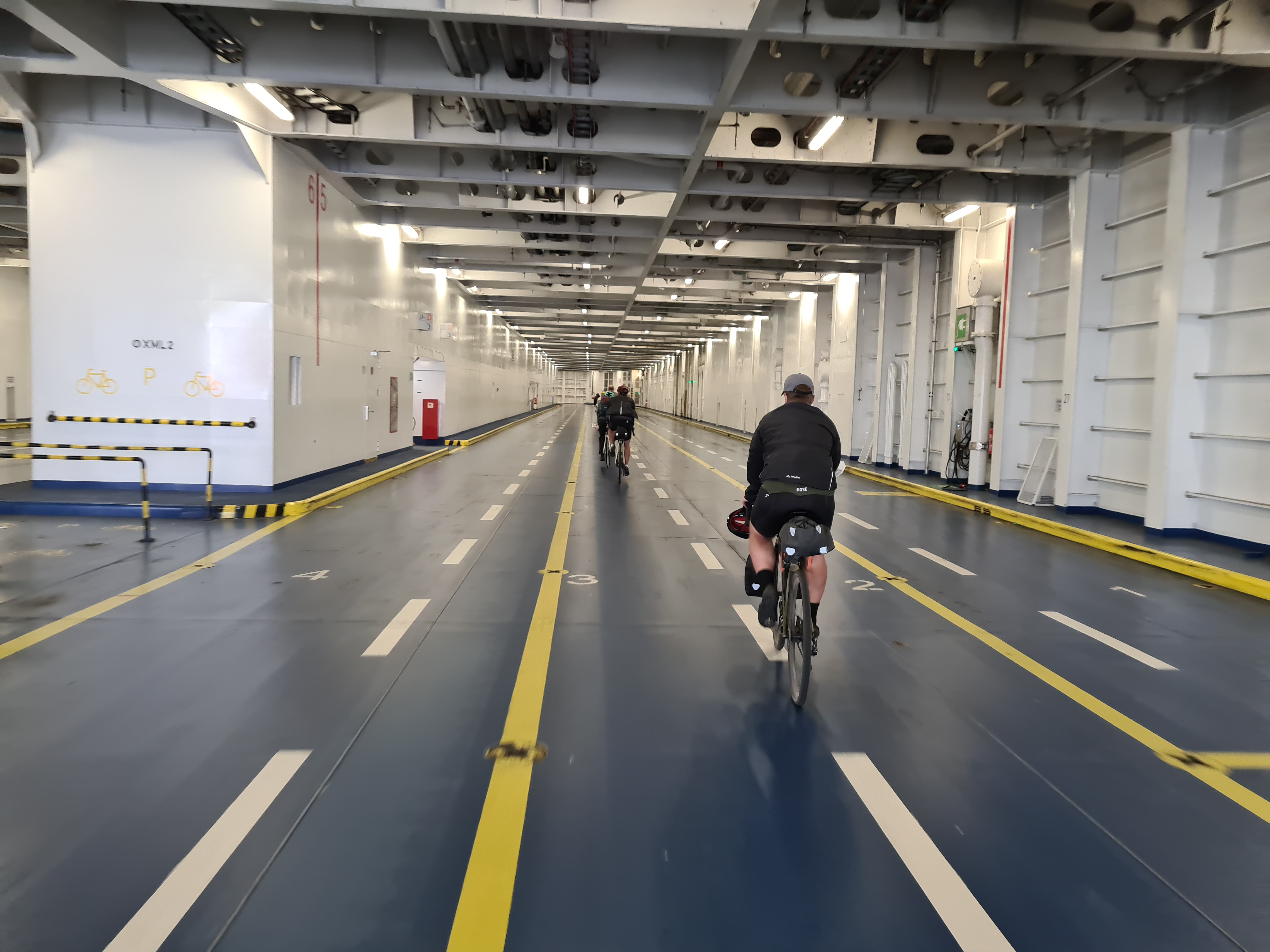 Früh los, um die Fähre zu bekommen. Früh genug da gewesen, schnelle Pommes an dem Imbiss vor ort.